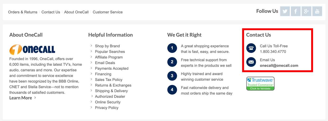 根據可用性測試和眼動追蹤研究,使用者通常會在頁面右上角或頁尾尋找“聯絡我們”連結。將該連結隱藏或不突出會讓公司顯得不透明、不可信。