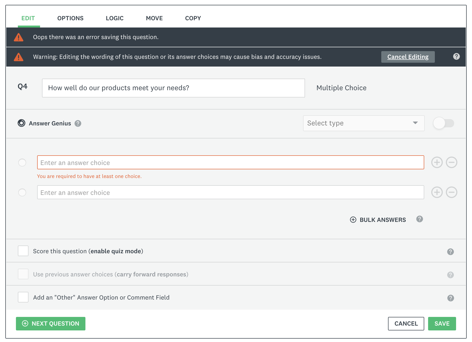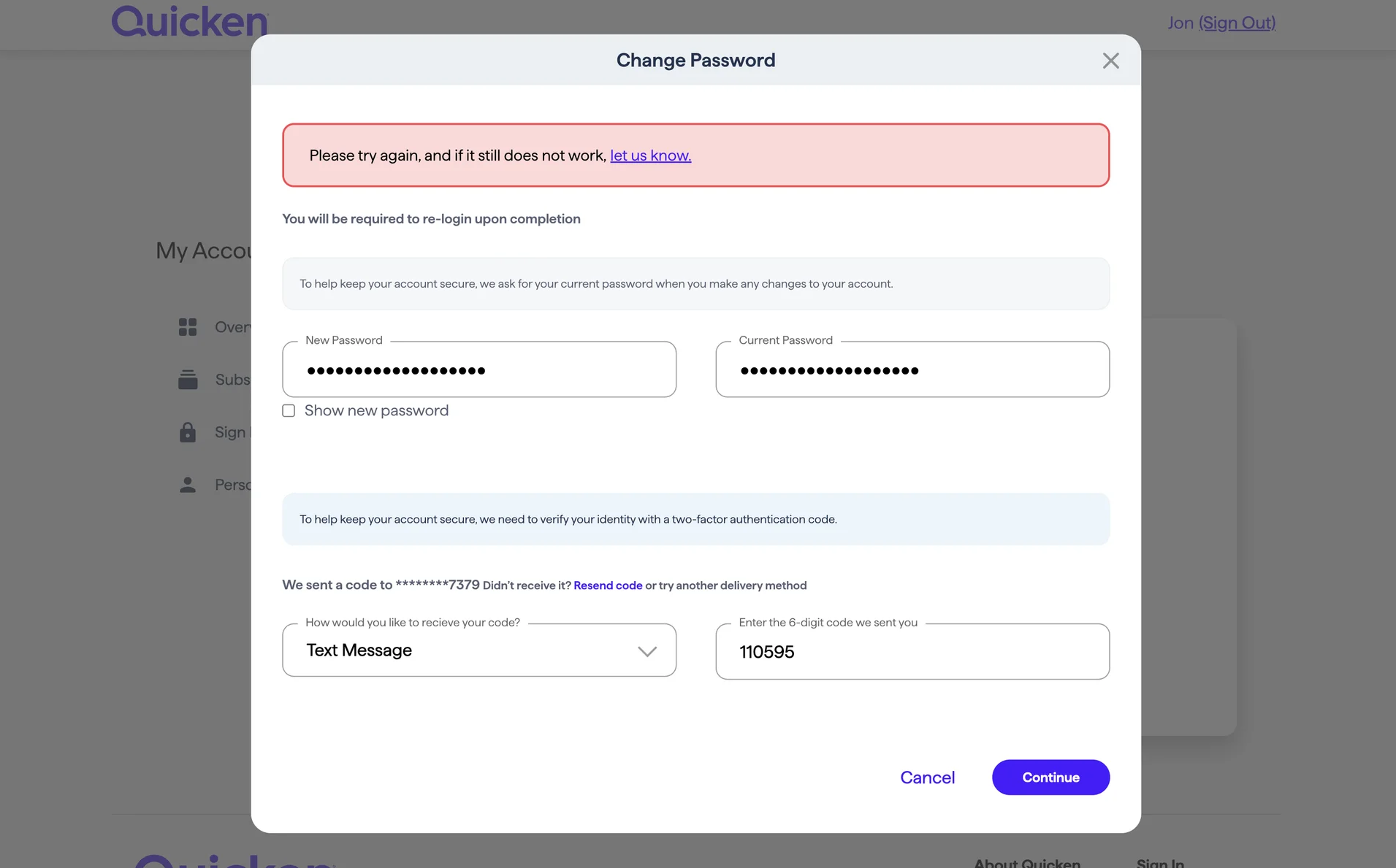- 提供更具操作性的錯誤資訊或支援選項。案例:Quicken為重複錯誤提供聯絡支援的連結。