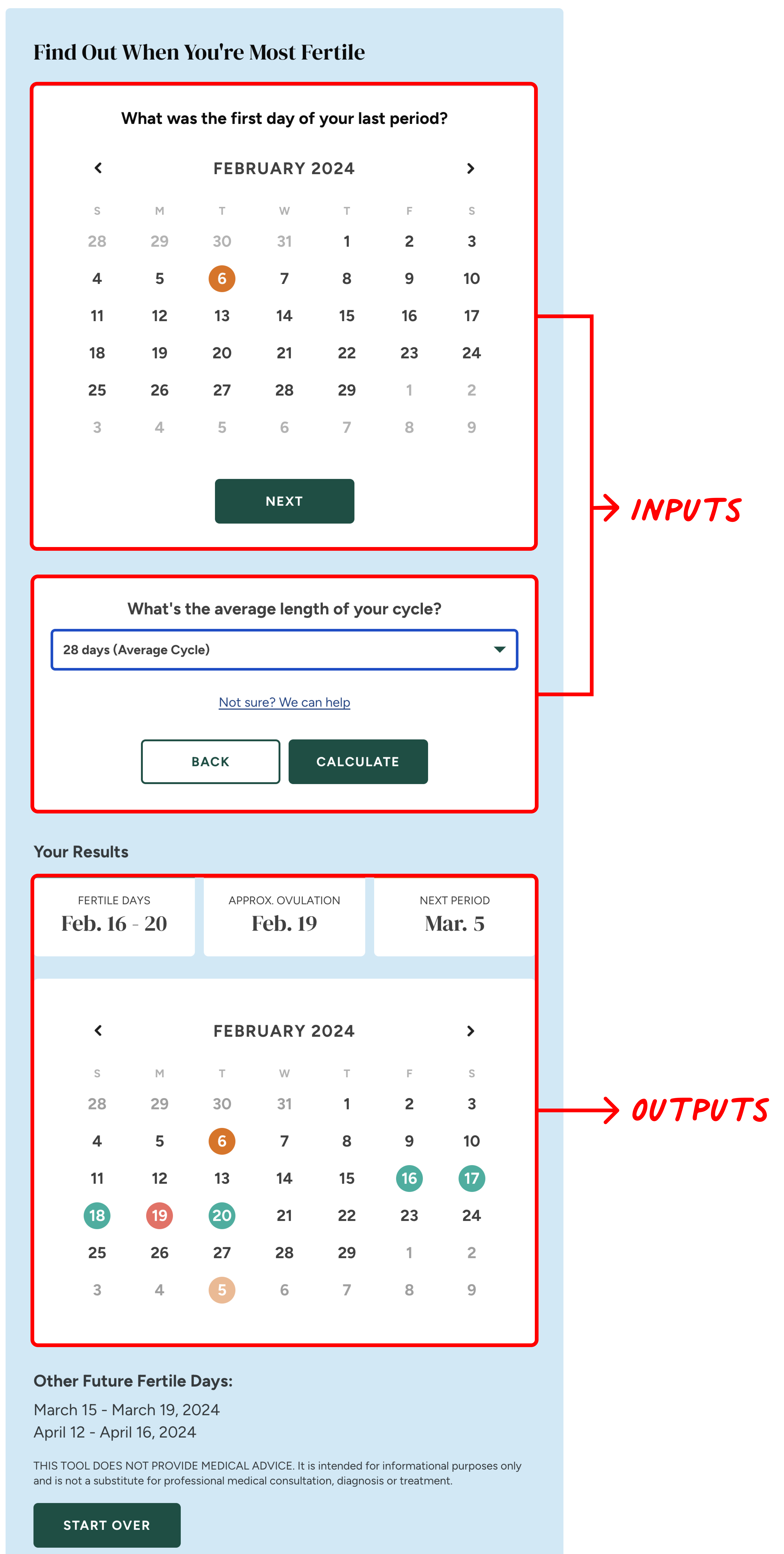 功能:幫助使用者估算未來情況。使用者通常信任網站提供的計算結果,即使不完全理解演演演算法。例如,排卵期計算器預測使用者的排卵期;投資計算器預測未來市場回報率。