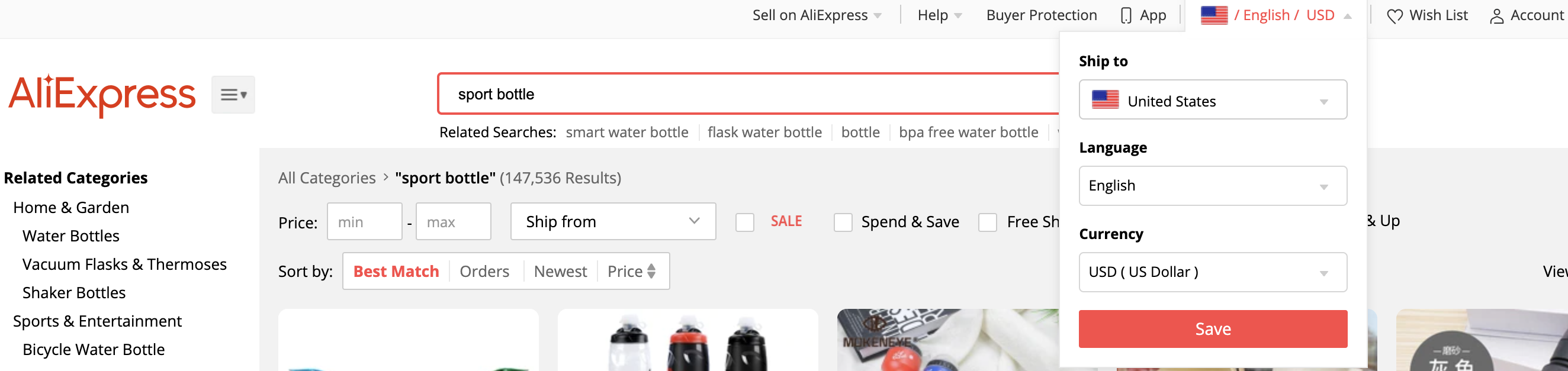 一些國際購物者希望獨立調整語言、國家和貨幣設定。例如,AliExpress允許使用者獨立選擇運輸國家、貨幣和語言設定,滿足不同購物需求。