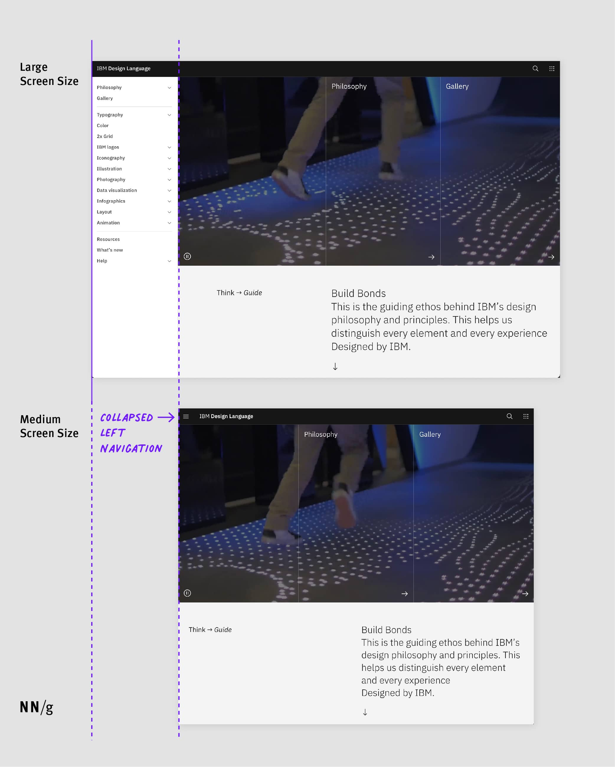 - 不同的導航:例如,左側導航在從中屏到小屏時可能摺疊為漢堡選單。