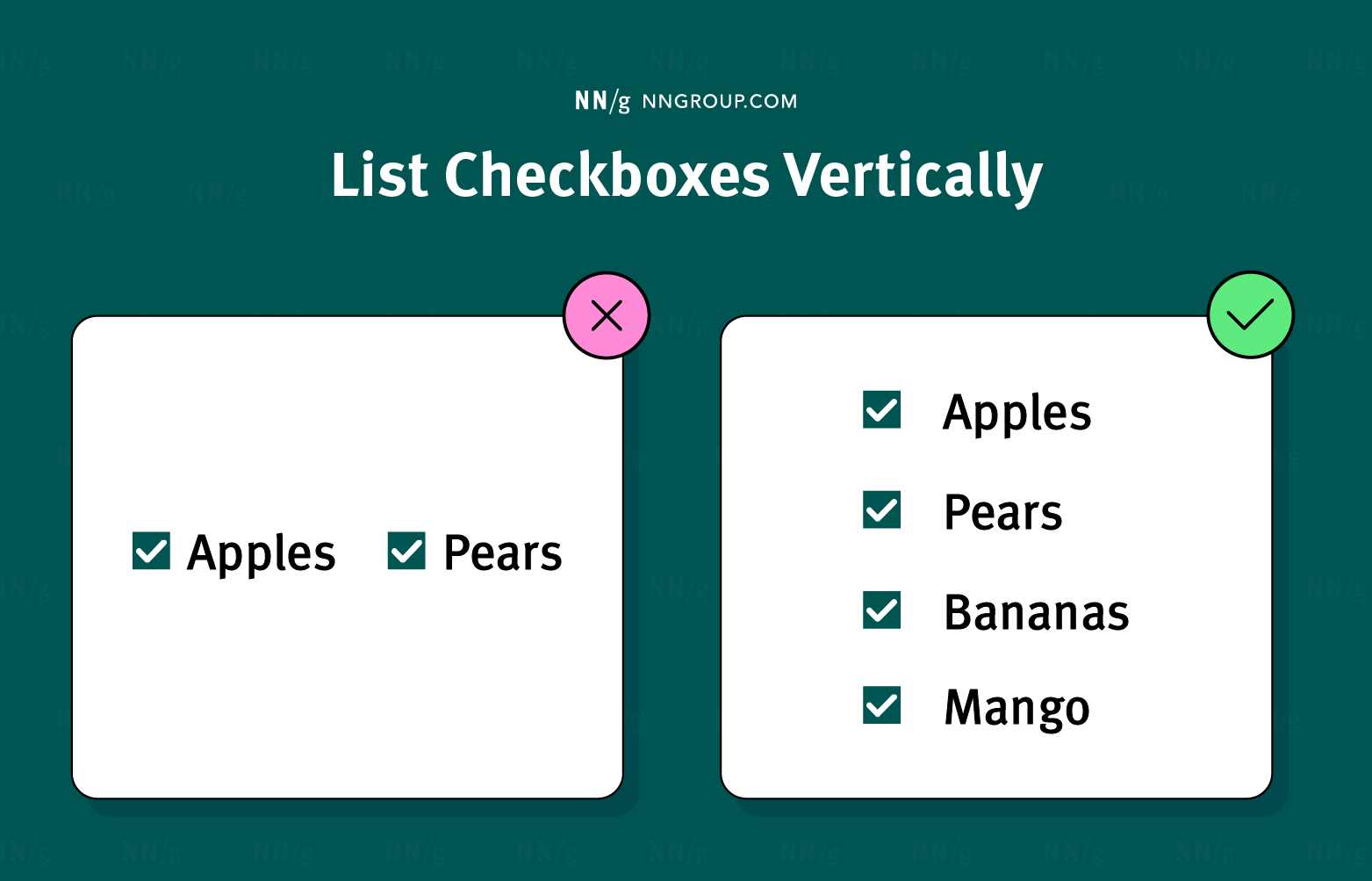 豎直排列列表項:為了提高可讀性,核取方塊列表應豎直排列。