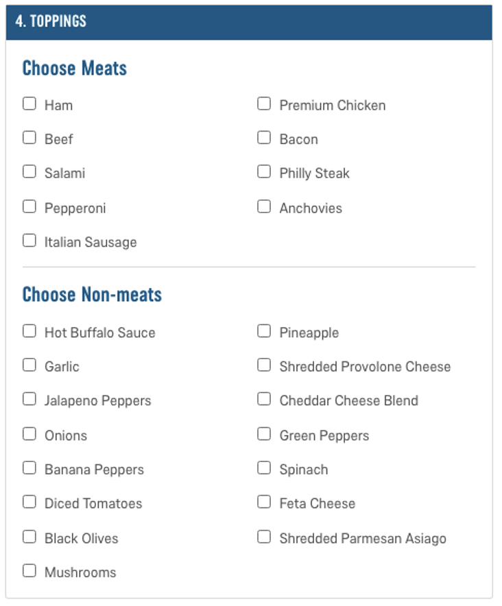 Checkbox List核取方塊列表:最常見的核取方塊應用形式,允許使用者從列表中獨立選擇任意數量的專案。適用於使用者可以選擇列表中的一項、幾項或全部的場景,如點餐應用的配料選擇。