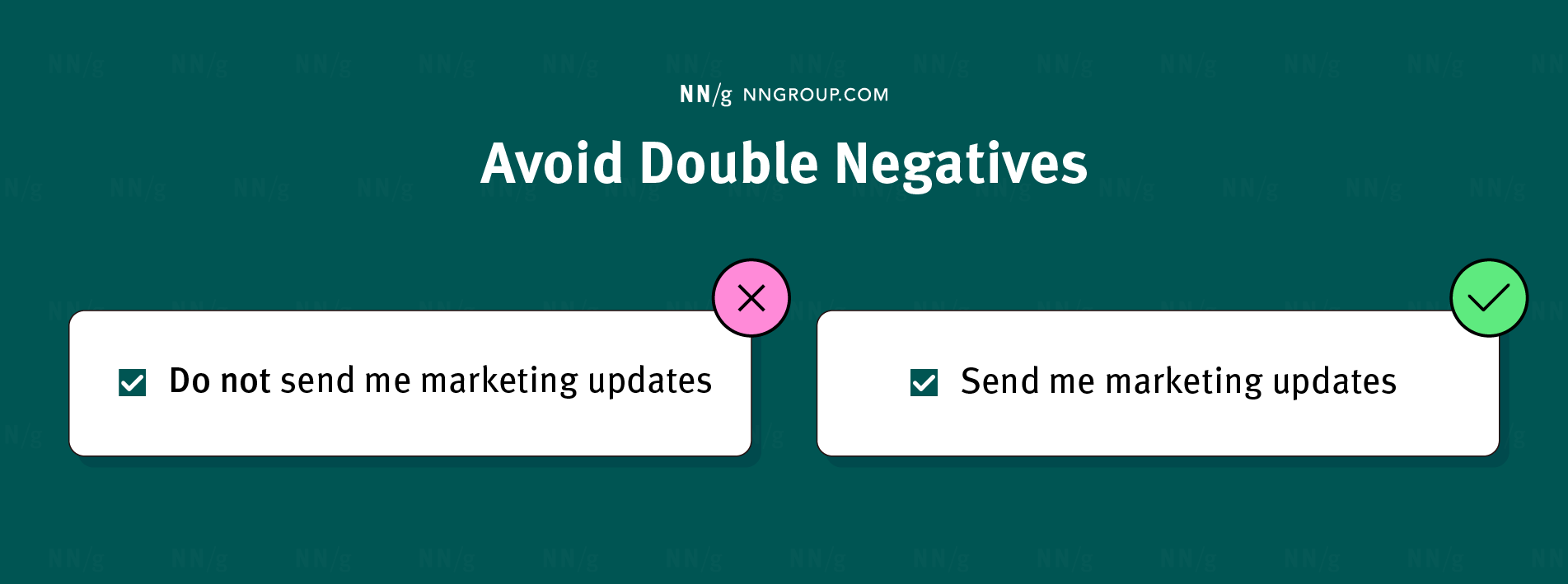 使用積極的標籤措辭:避免雙重否定,以減少理解錯誤。例如,將“請勿傳送營銷更新”替換為“傳送營銷更新”。