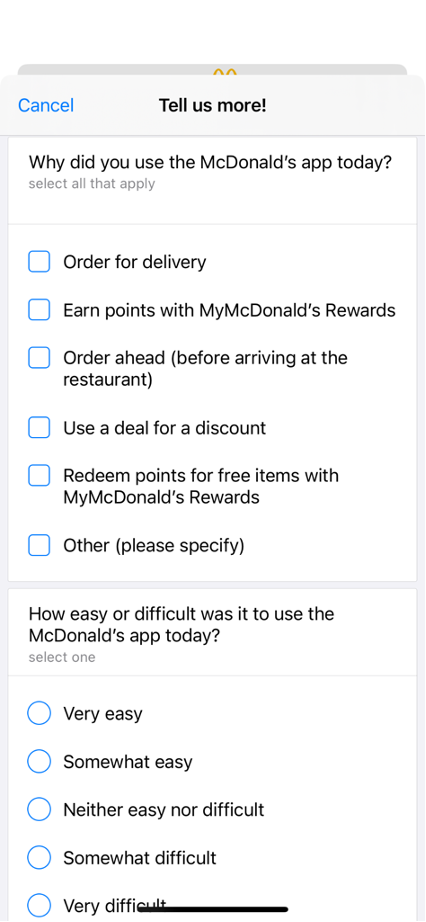 提示選擇所有適用項:對於可能多項選擇的場景,建議使用“選擇所有適用項”的說明。