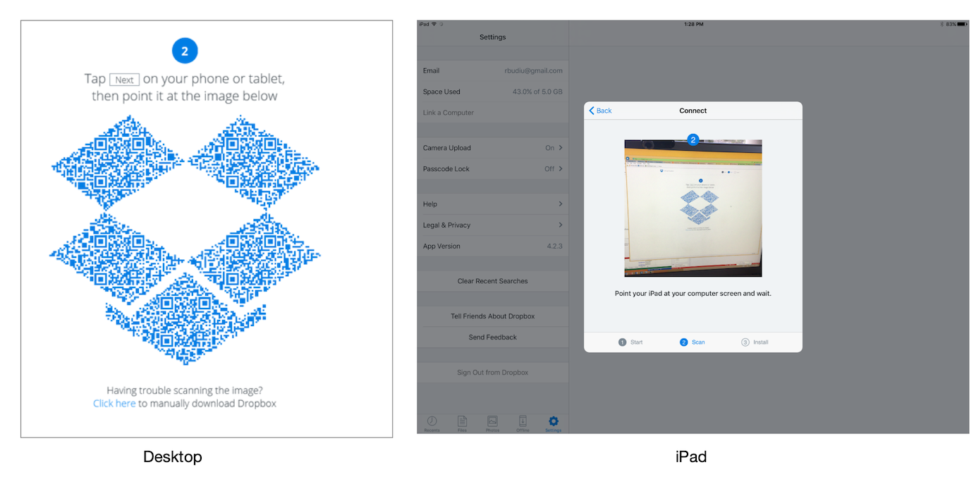 Dropbox(流行的檔案託管服務)也使用協作來降低互動成本。現有的Dropbox使用者可以使用已關聯賬戶的手機或平板掃描顯示在目標裝置上的二維碼,從而快速下載並同步Dropbox應用。
