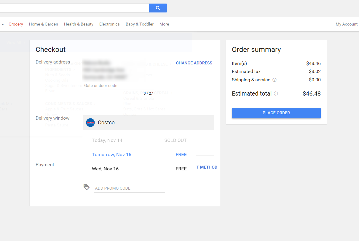 在某些情況下,使用者的日期選擇非常有限。例如,Google Express 的線上雜貨配送服務透過短列表提供可選配送日期,不可用的日期會被灰顯或直接隱藏。