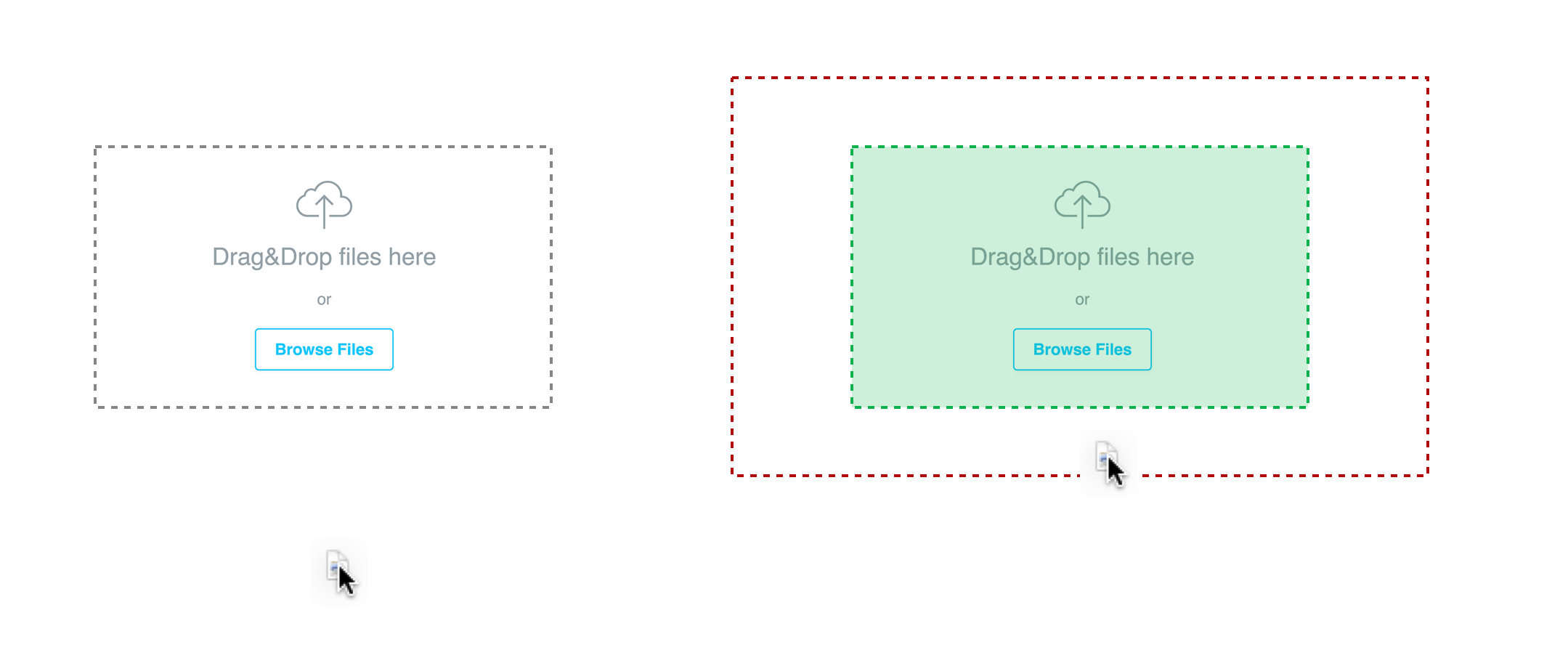 檔案上傳示例:使用者在拖動檔案到上傳區域時,區域會在檔案靠近時高亮並啟用,即使檔案未完全進入目標範圍。