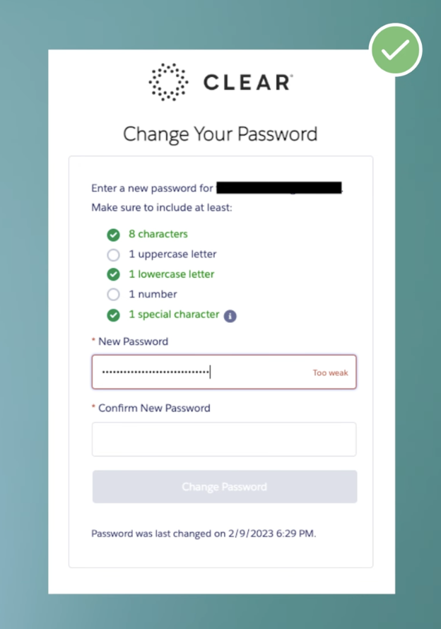 建立複雜密碼時,實時顯示哪些要求已滿足,哪些未滿足。