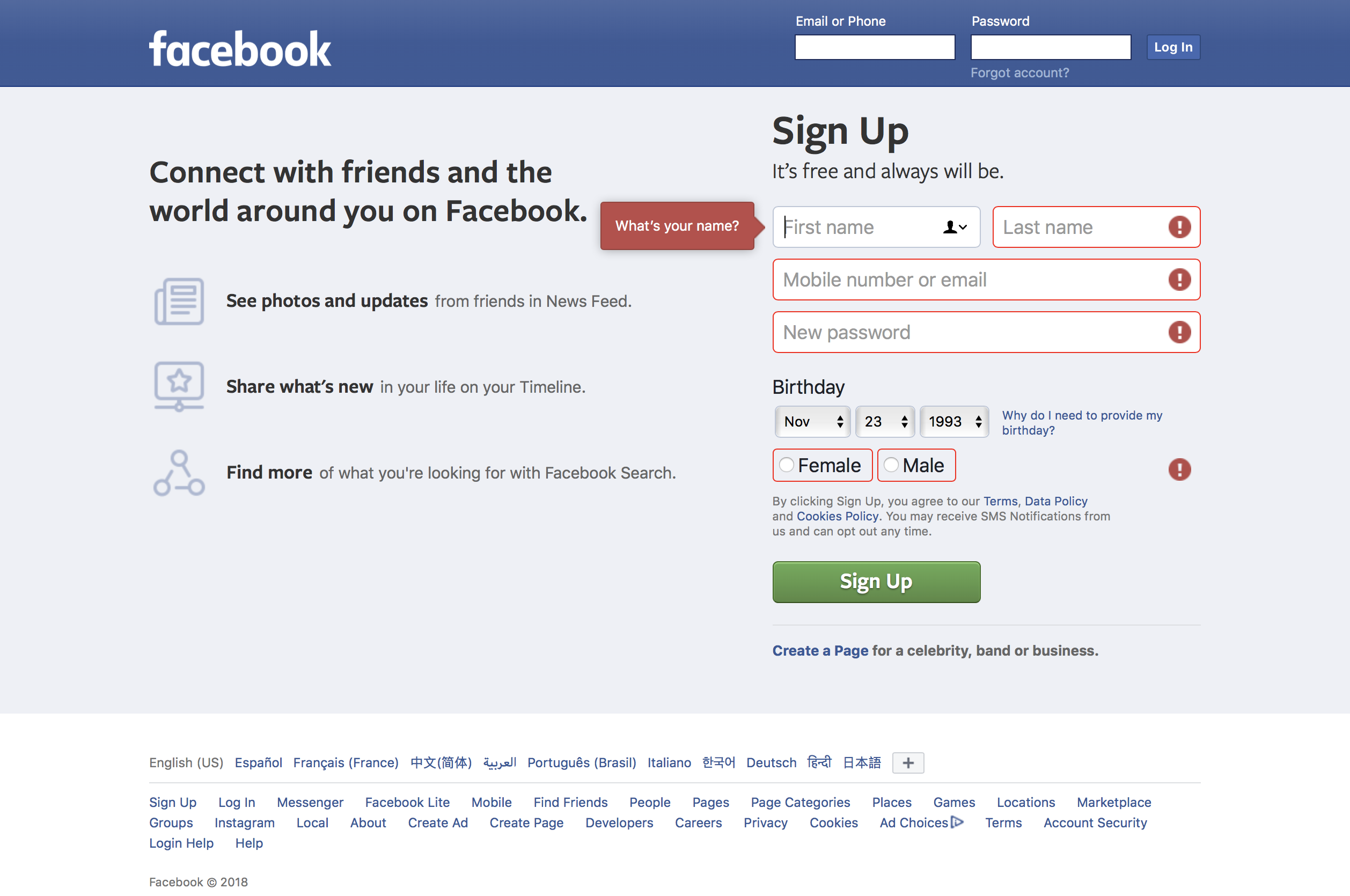 理想情況下,應在使用者完成每個欄位的填寫後立即顯示驗證資訊。如果該欄位存在錯誤,旁邊應出現指示,這樣使用者可以立即進行修改,避免返回修正之前填寫的欄位。這種行內驗證會顯著降低使用者的互動成本,幫助使用者更快完成表單填寫。