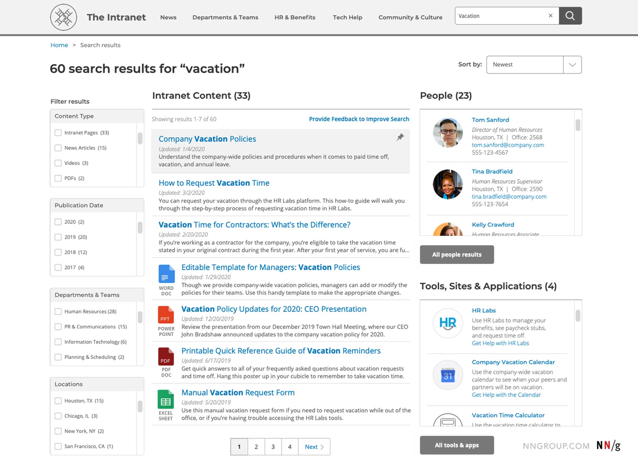 - 整合搜尋框功能:提供單一搜尋框,用於搜尋內容、人員和工具,避免分散的多搜尋框設計導致混亂。儘可能索引整個系統中的內容和資源。