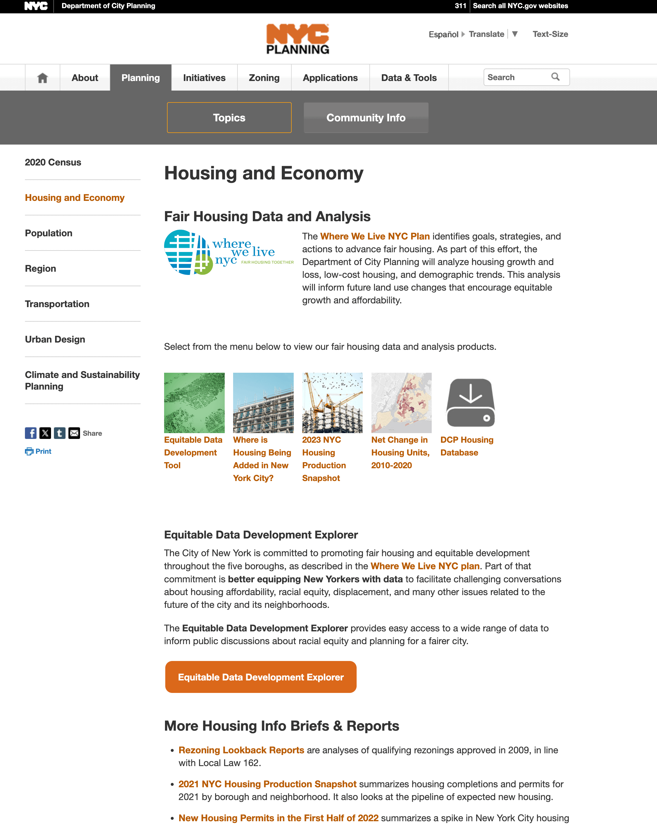 正確示例: NYC 規劃部門網站在左側提供區域性導航,便於使用者橫向瀏覽相關內容。