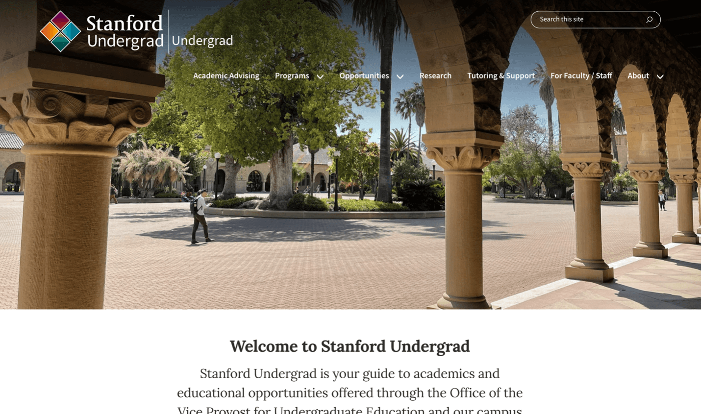 正確示例: Stanford 網站使用插入符號(如箭頭)指示可展開的子選單。