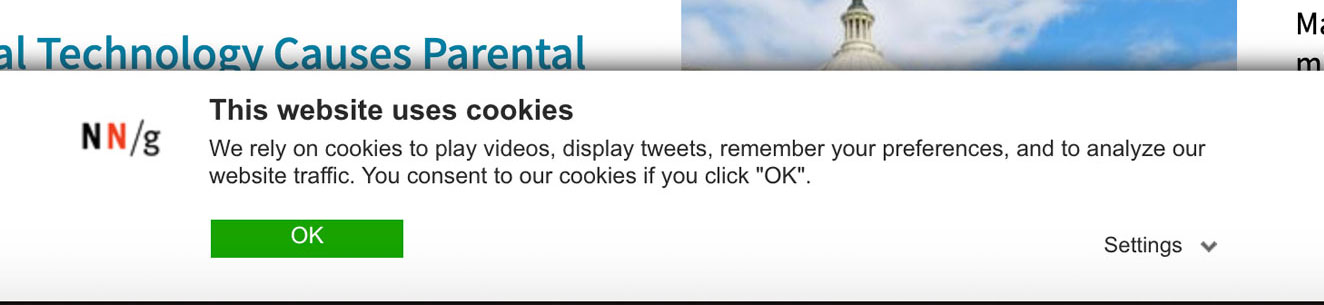 NNgroup.com使用非模態彈窗,詳細描述了資料使用的原因,增強了使用者對資料使用的信任感。