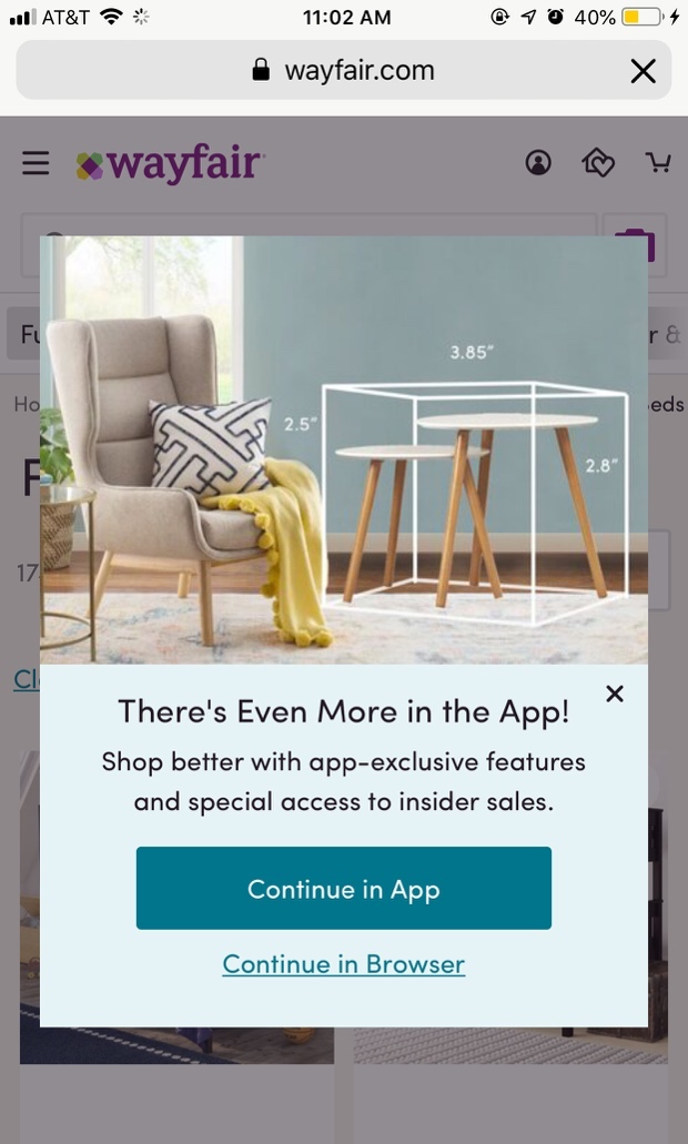 在移動網站上使用模態彈窗推廣應用下載並不總是合適。尤其是對於偶然訪問的使用者,他們可能不願意切換到應用程式,更不希望重複當前的操作流程。此類彈窗可能會引起使用者反感,影響其對網站的整體印象。
