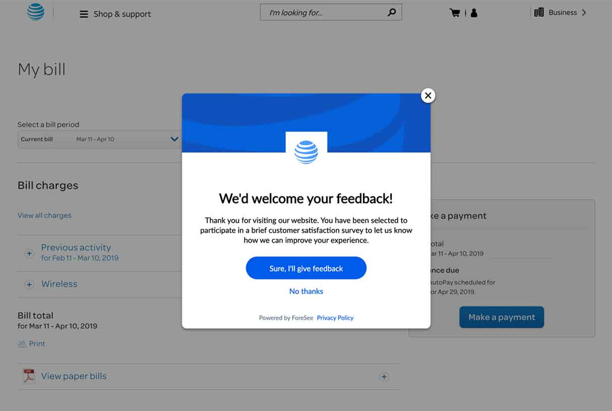 替代方案:在關鍵任務完成後再請求反饋,或提供靜態、非侵入性的反饋入口,如螢幕邊緣的標籤或頁尾連結,讓使用者隨時自願提供反饋。
