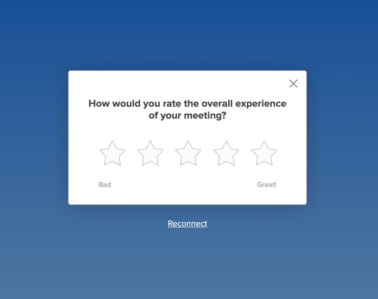 替代方案:在使用者完成重要任務後再請求反饋,確保反饋基於實際互動體驗。例如,視訊會議軟體BlueJeans在會議結束後請求反饋,這樣使用者的反饋更切合實際,減少了打擾。