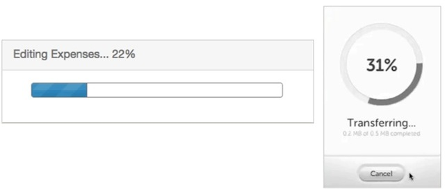 示例:Expensify.com 和 WeTransfer.com 使用百分比進度條,並附帶簡要說明當前任務的文字提示。