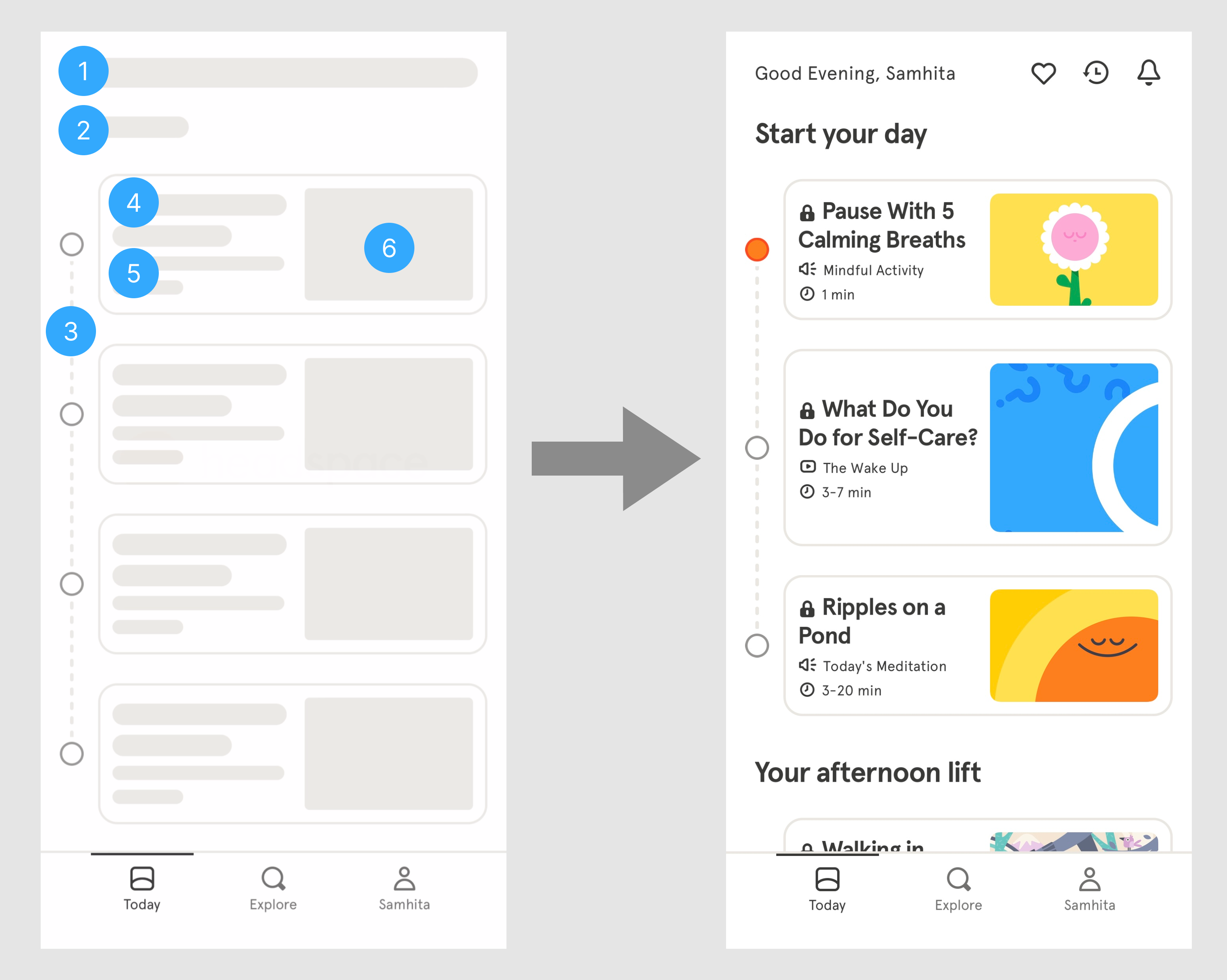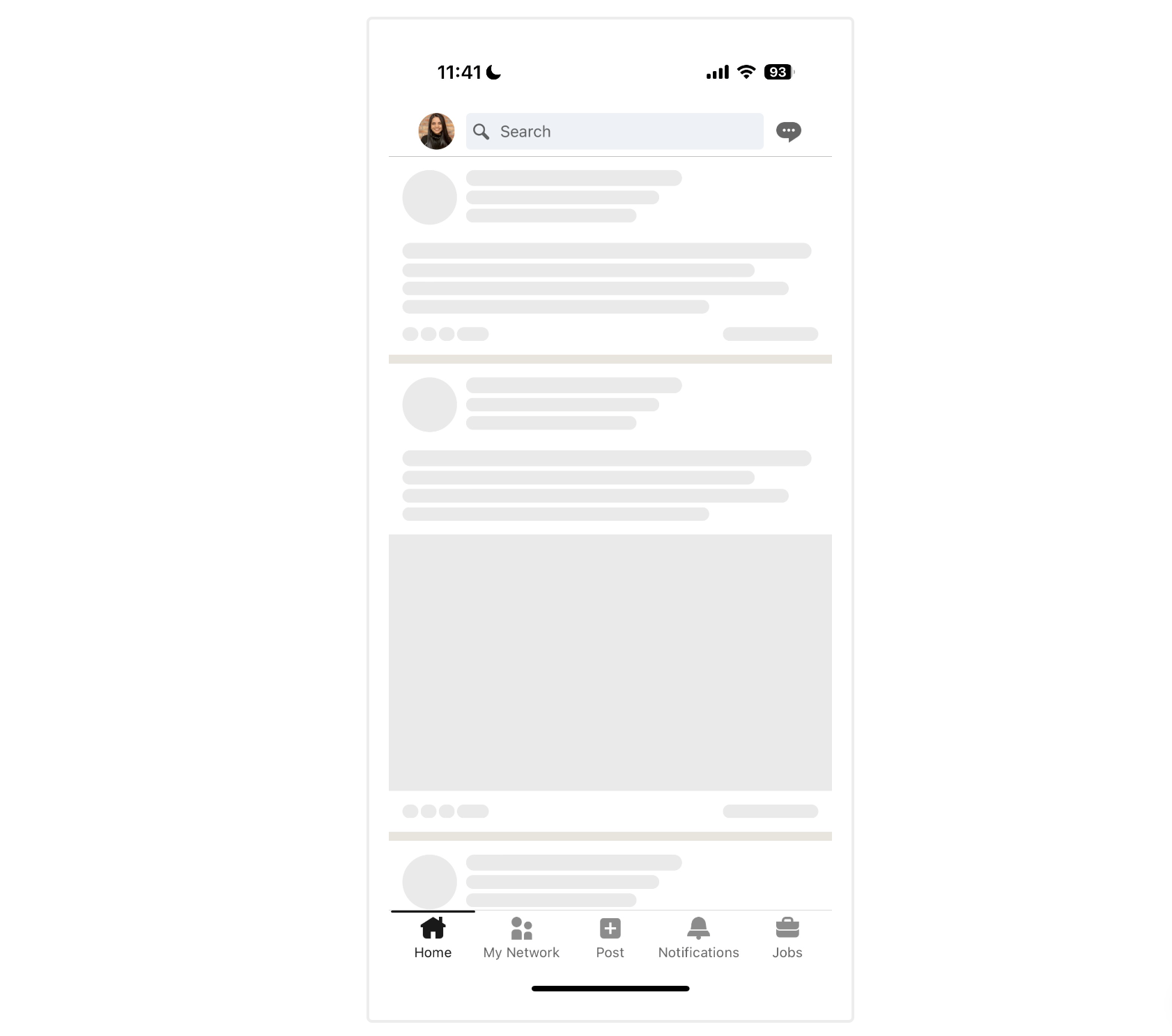 靜態內容和影象骨架屏:最常見的骨架屏型別,以灰色框模擬頁面佈局,使使用者預期內容層次結構。