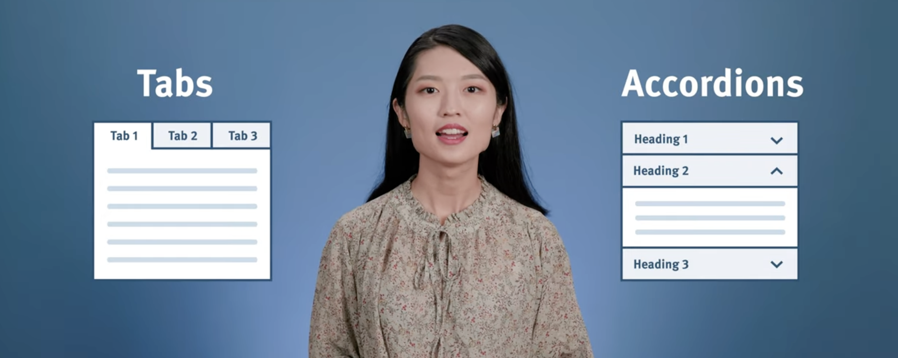 Tabs(標籤頁)和 accordions(手風琴式摺疊)是常見的頁面內容結構化設計模式。它們有助於在頁面上簡潔地展示大量內容,讓使用者一目瞭然,並根據需要訪問詳細內容。這些設計模式可以減少視覺雜亂,幫助使用者聚焦於當前的重要資訊。儘管這兩種模式有相似之處,但它們各自的特點和應用場景有所不同。
