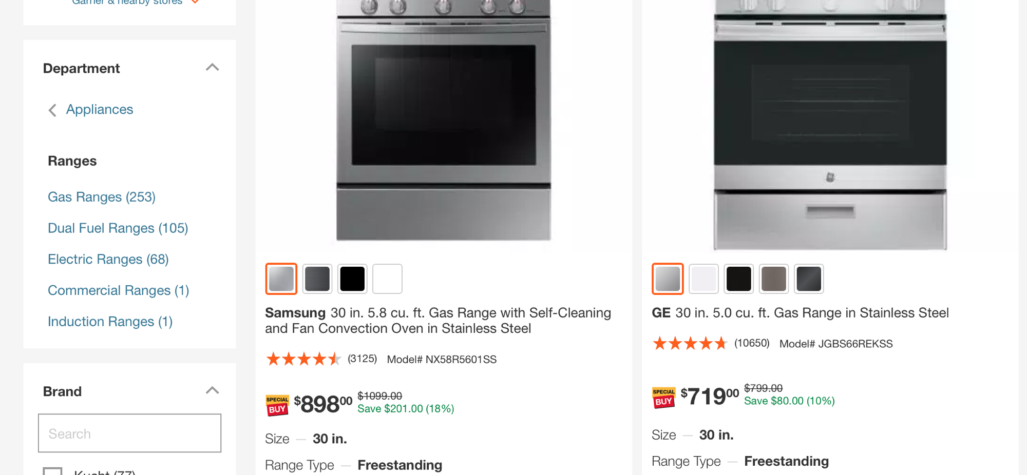 分面系統: 提供篩選選項,幫助使用者逐步明確需求。例如,使用者尋找“雙燃料灶具(dual-fuel ranges)”時,可透過篩選選項學習相關術語。