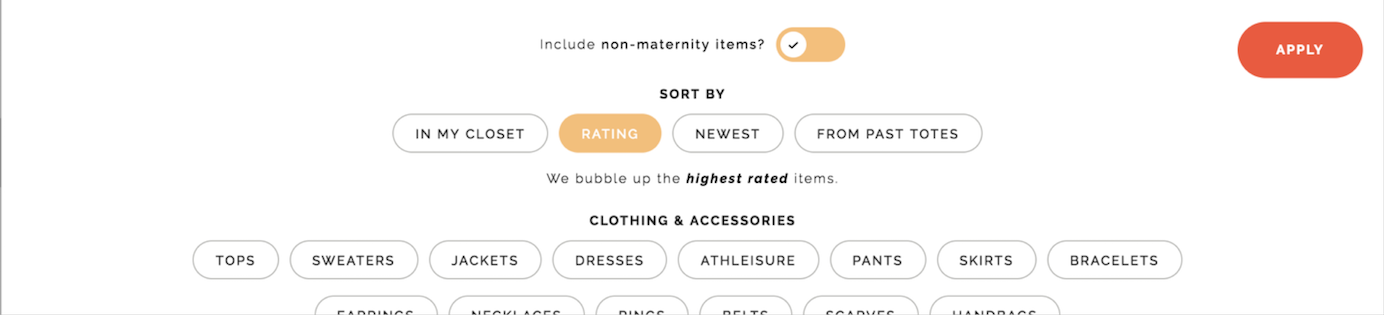 錯誤示例:Le Tote的標籤“包括非孕婦用品?”過於模糊,使用者難以判斷開關狀態。