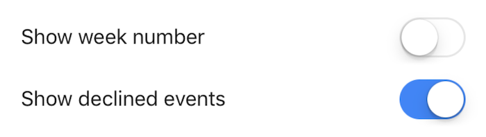 正確示例:Google Calendar的開關標籤直接描述了狀態,清晰易懂。