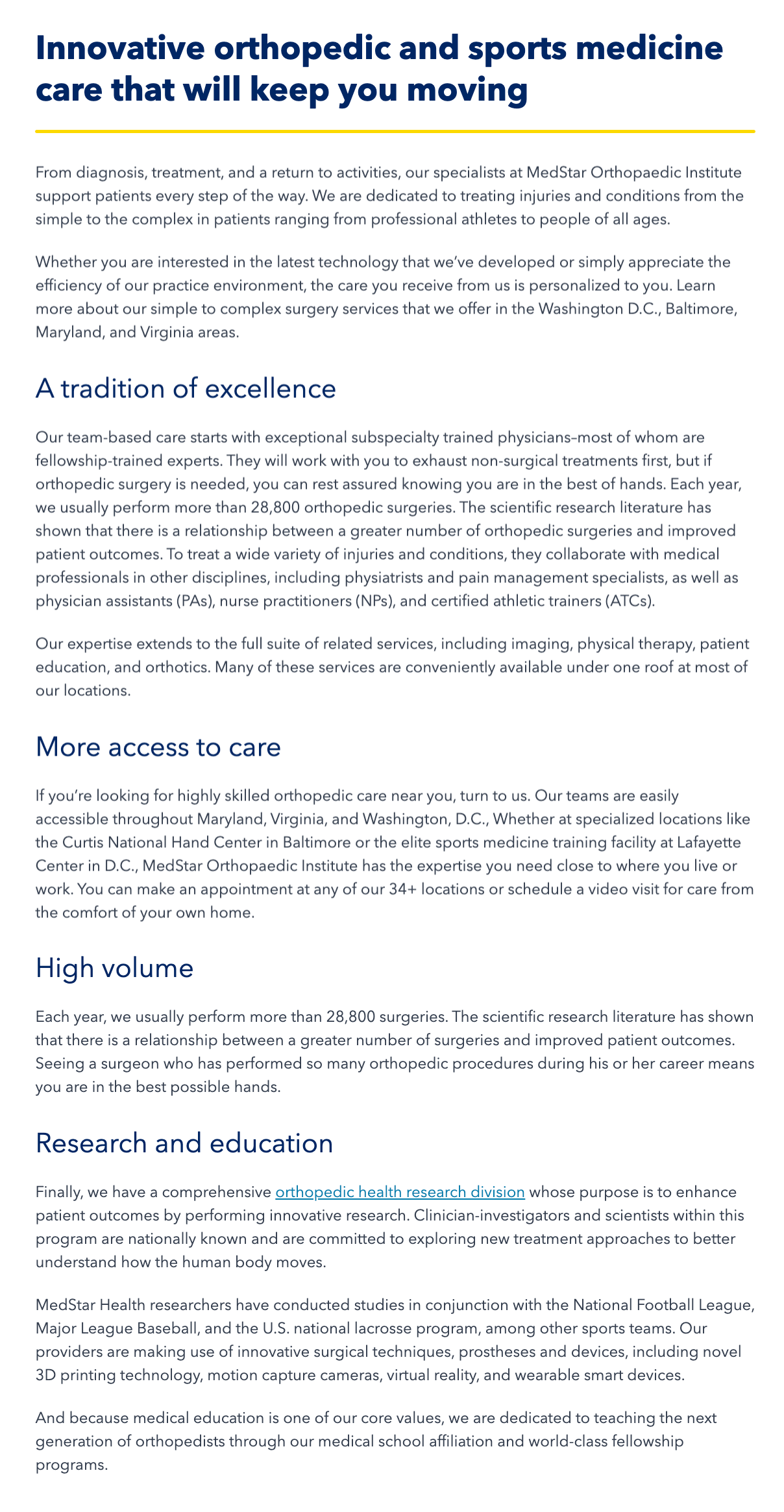 案例:一家醫院系統的著陸頁使用長文案介紹其骨科服務的歷史、優勢和研究成果,並嵌入關鍵詞如“馬裡蘭”“華盛頓特區”和“弗吉尼亞”,以提高搜尋引擎中的可見度。