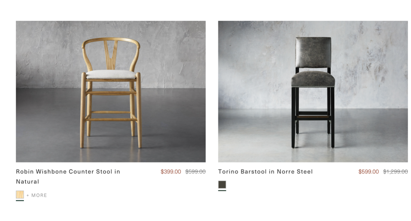 簡單變體過度分散:如 Arhaus 的椅子,因顏色和尺寸分為多個頁面,增加使用者負擔。