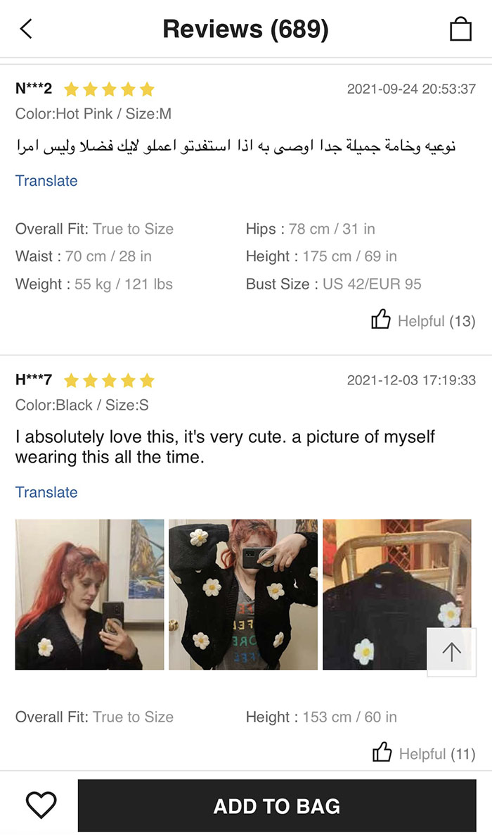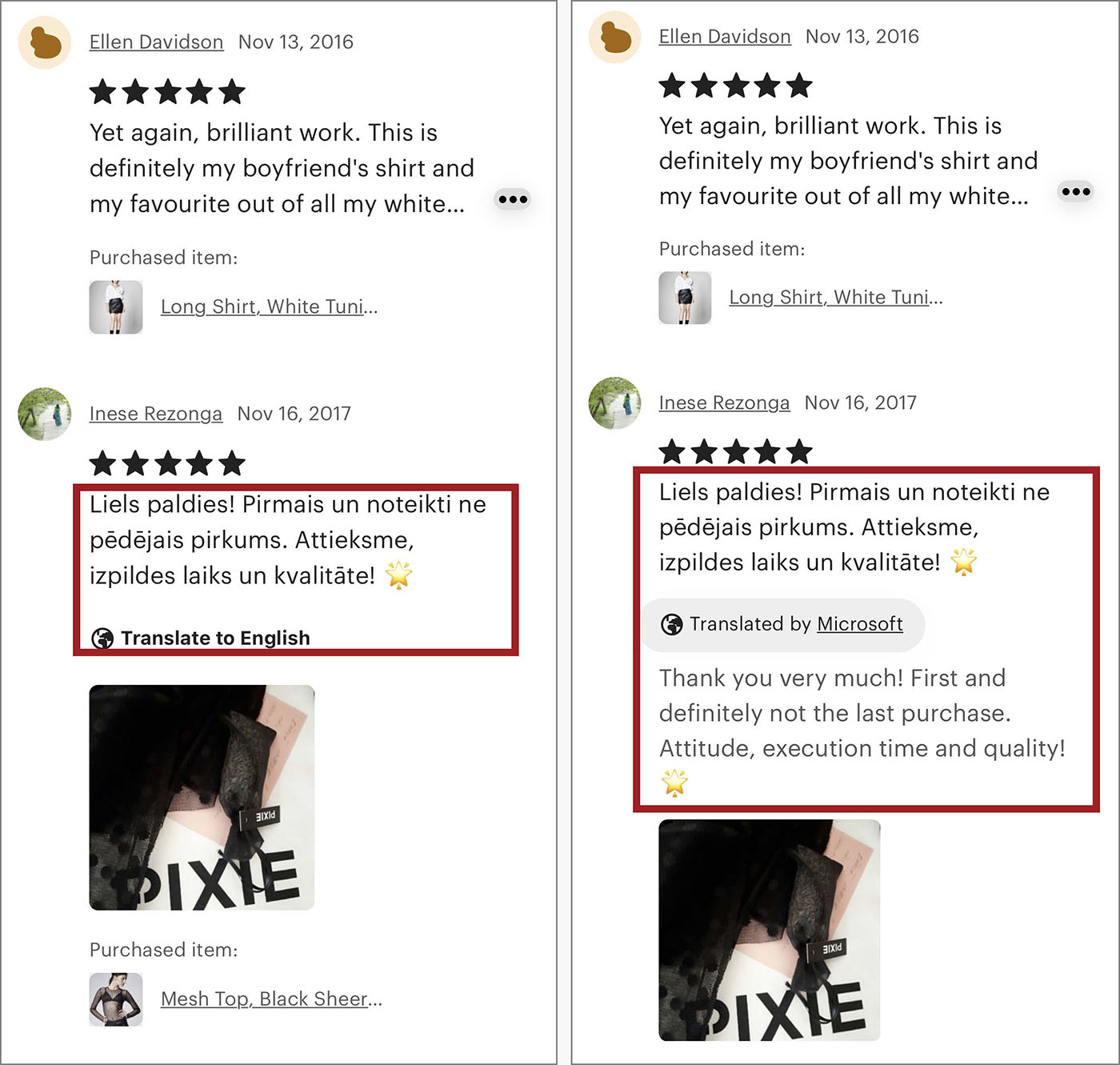 線上購物者高度依賴產品評論來決策。對於面向國際市場的網站,應該儘可能將評論翻譯成使用者的語言。