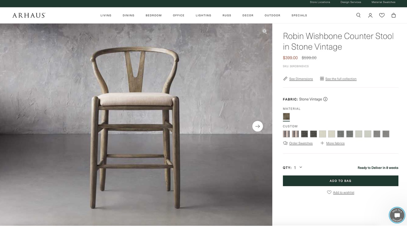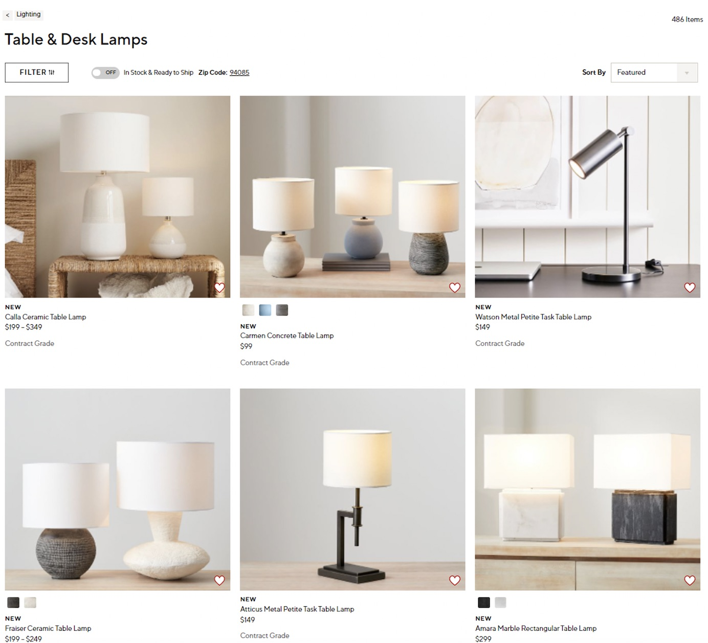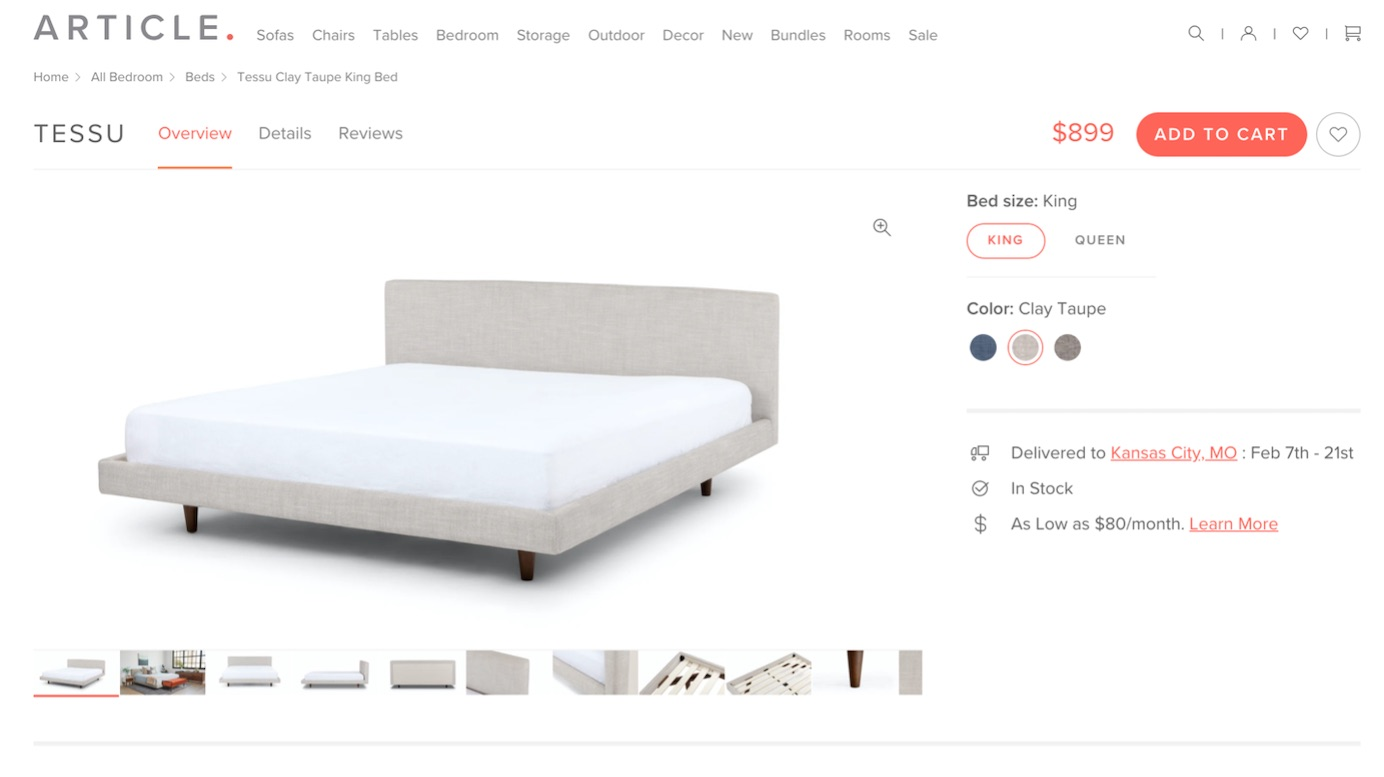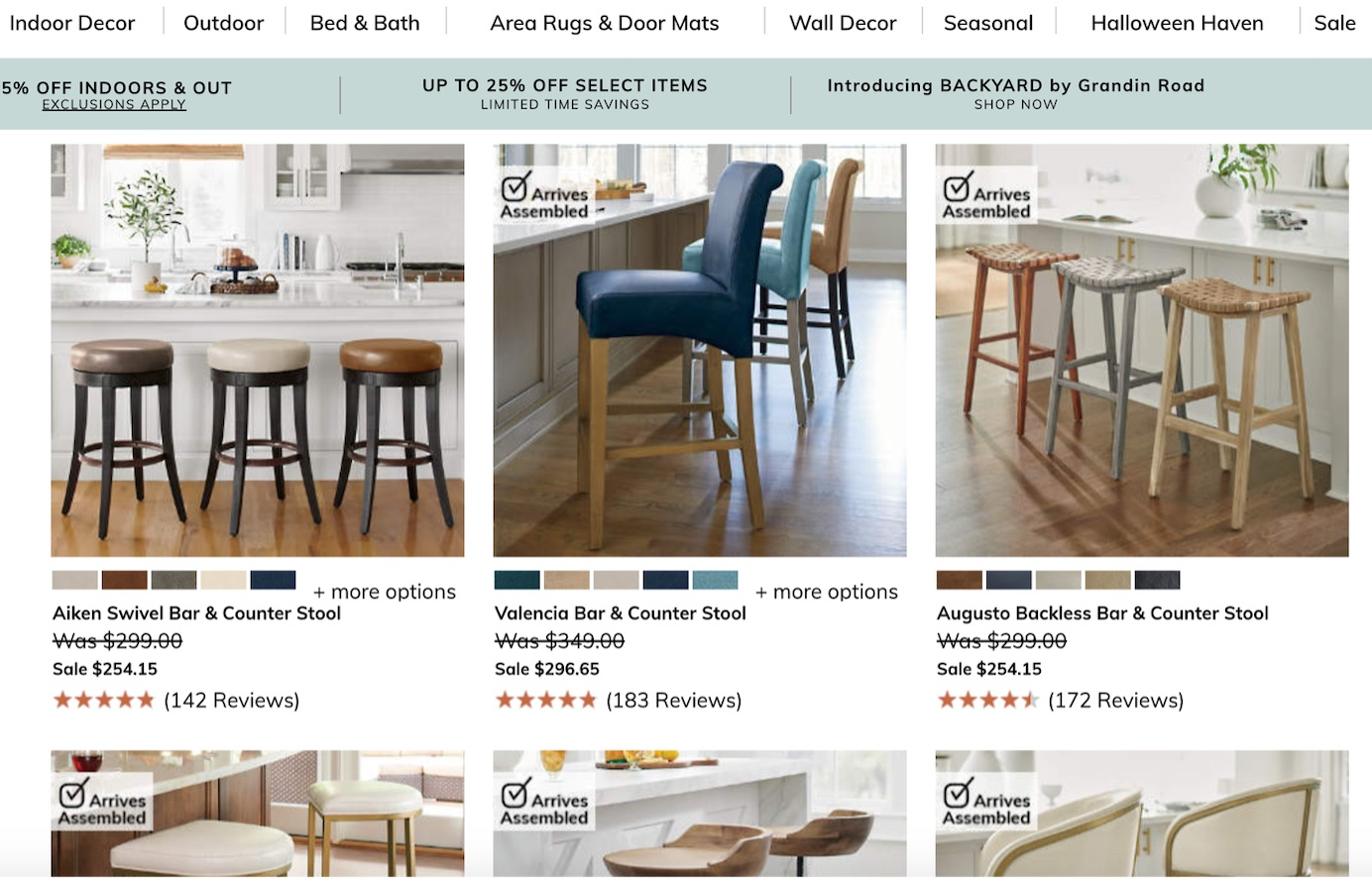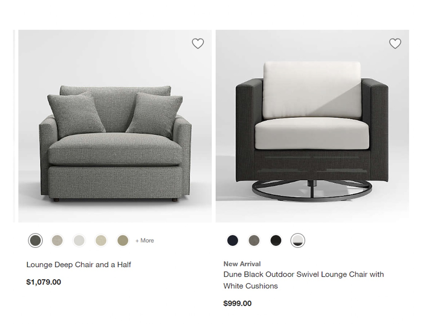 例如:Grandin Road展示多種變體的產品合照,讓使用者直觀瞭解可選項。
