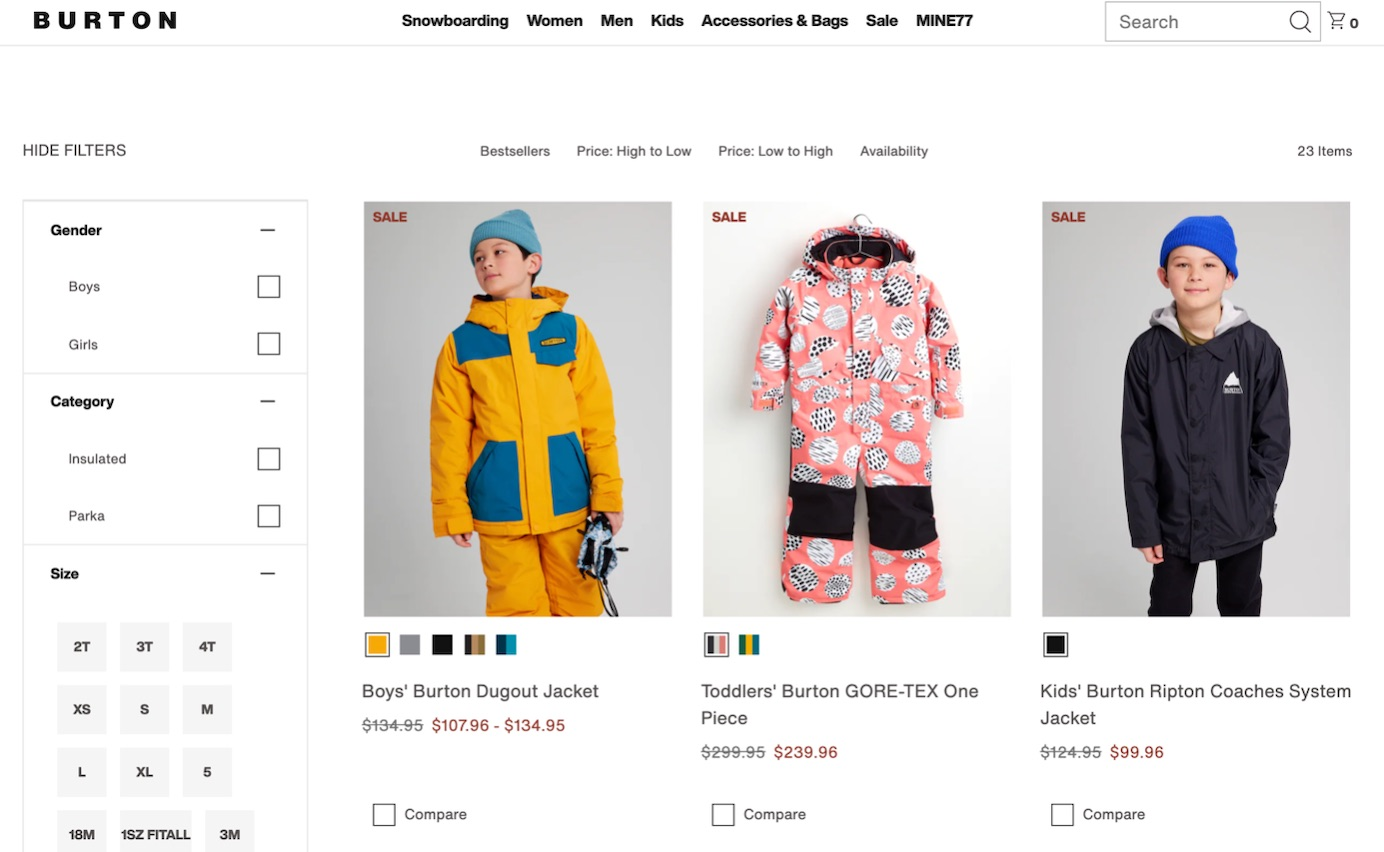 - 對於小型目錄網站,分散展示變體的同時,仍應在商品頁面提供切換功能,避免使用者錯過選項。