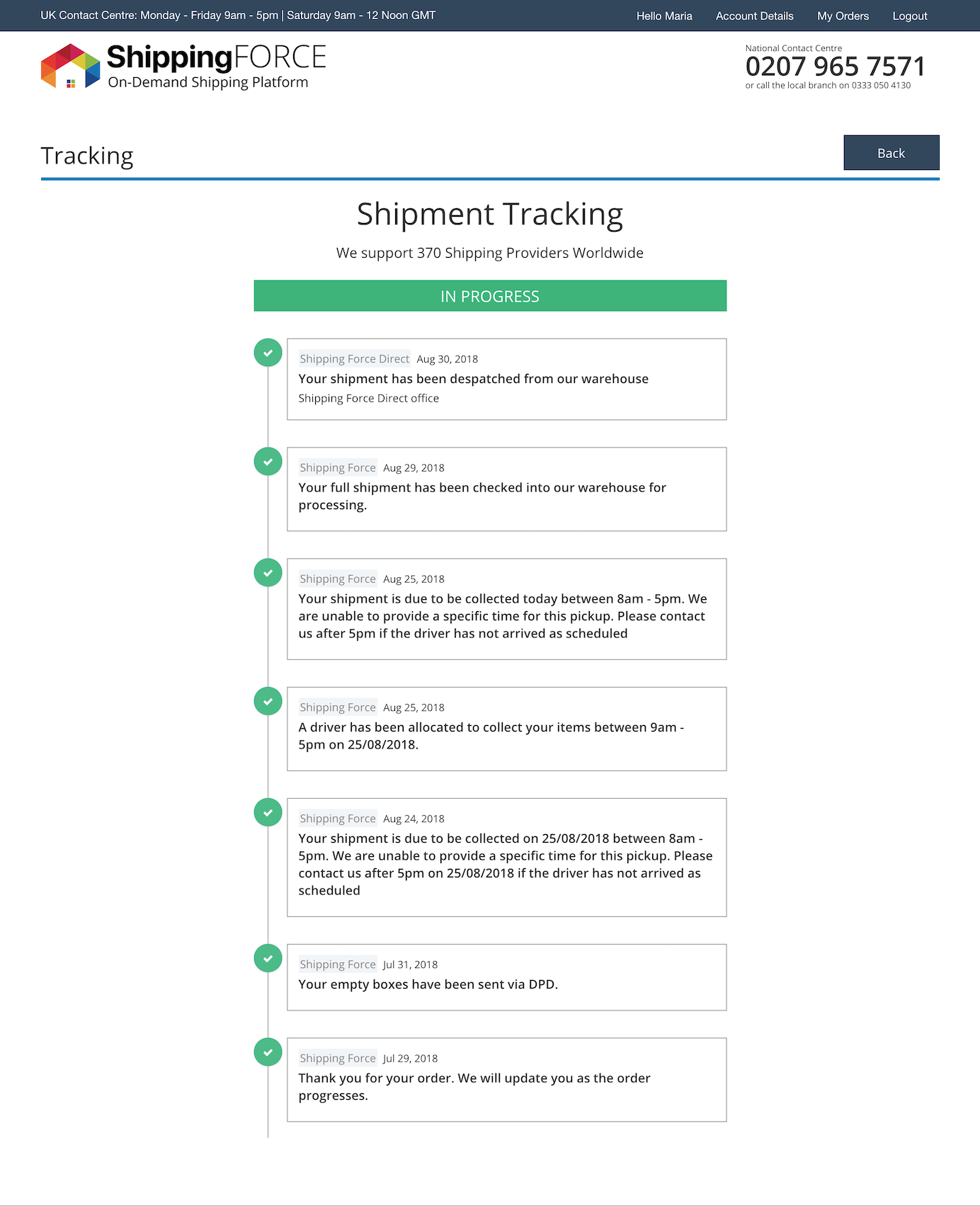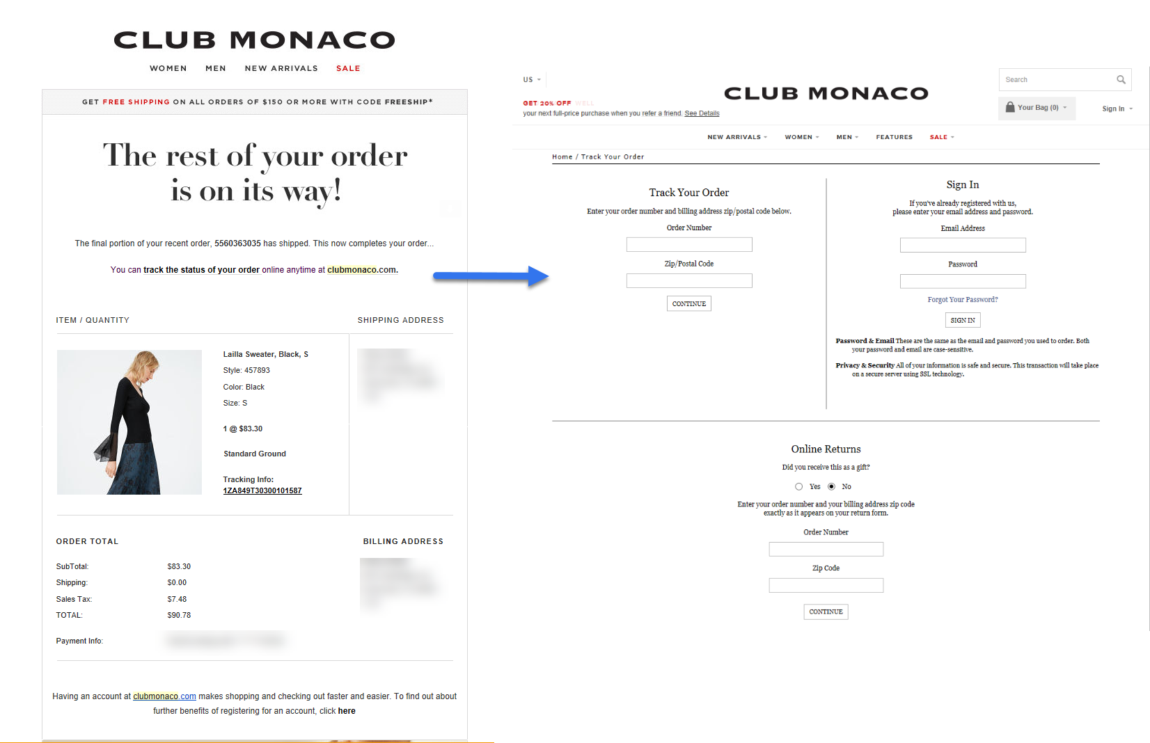 1 從客戶賬戶提供追蹤資訊:確保使用者可透過賬戶快速找到追蹤資訊,無需依賴郵件中的連結。