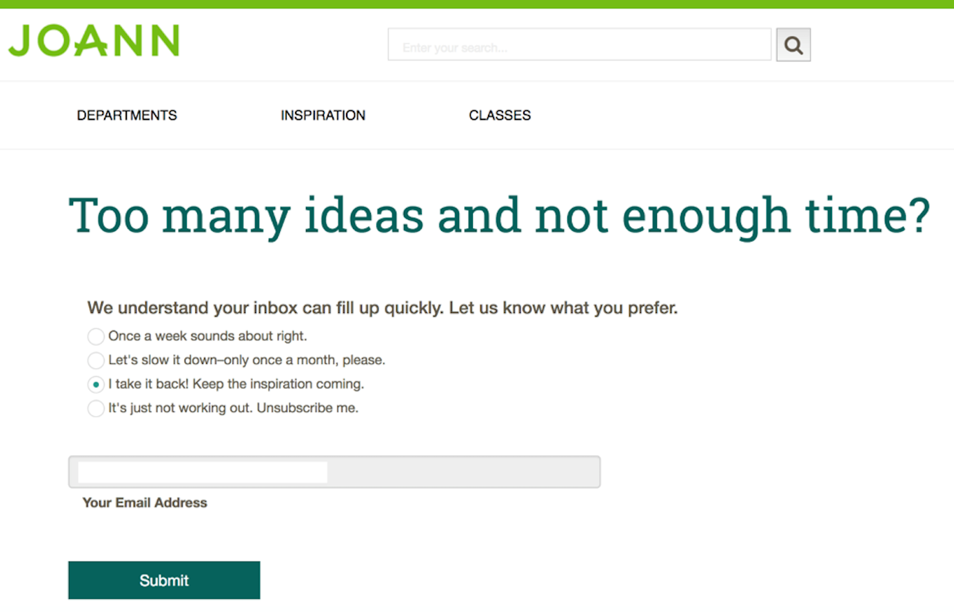 解決方法是提供減少郵件頻率或調整內容的選項,但不要幹擾取消訂閱的流程。