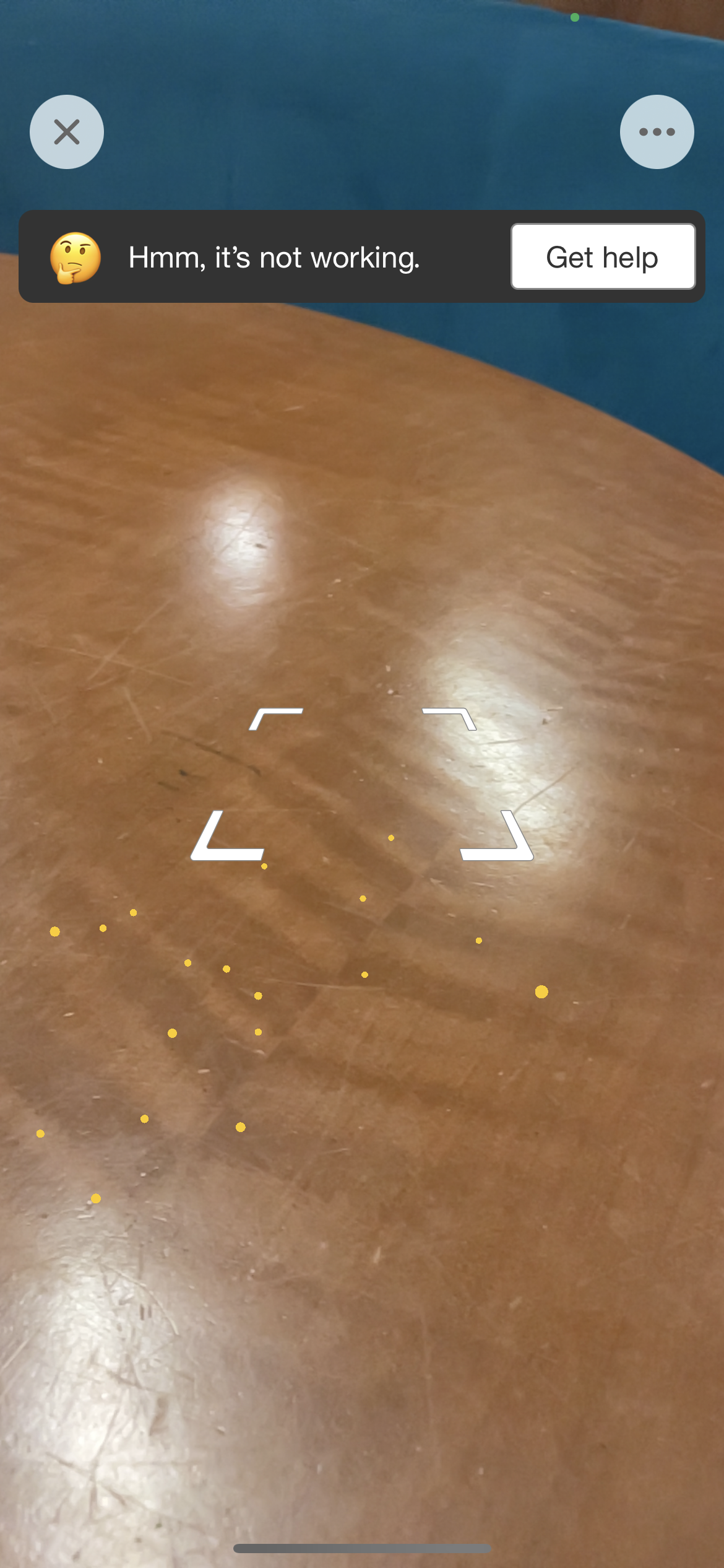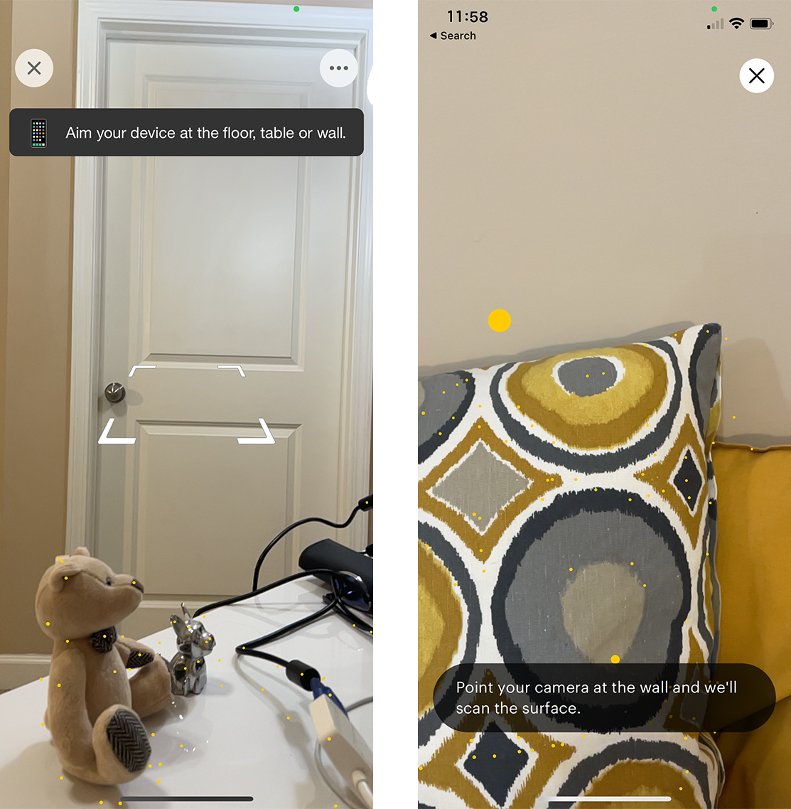 Etsy應用:使用者在牆壁上掃描時看到黃色點,卻不知道這些點的作用,最終放棄了AR功能。
