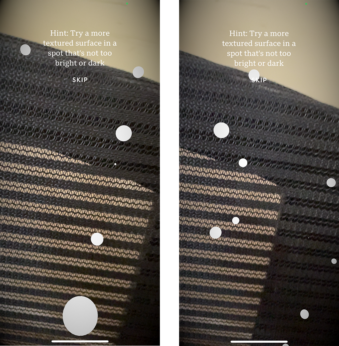 示例:Civilization AR應用要求使用者掃描有紋理的表面,但參與者將相機對準椅背紋理,卻因說明不足而不清楚為何未成功。