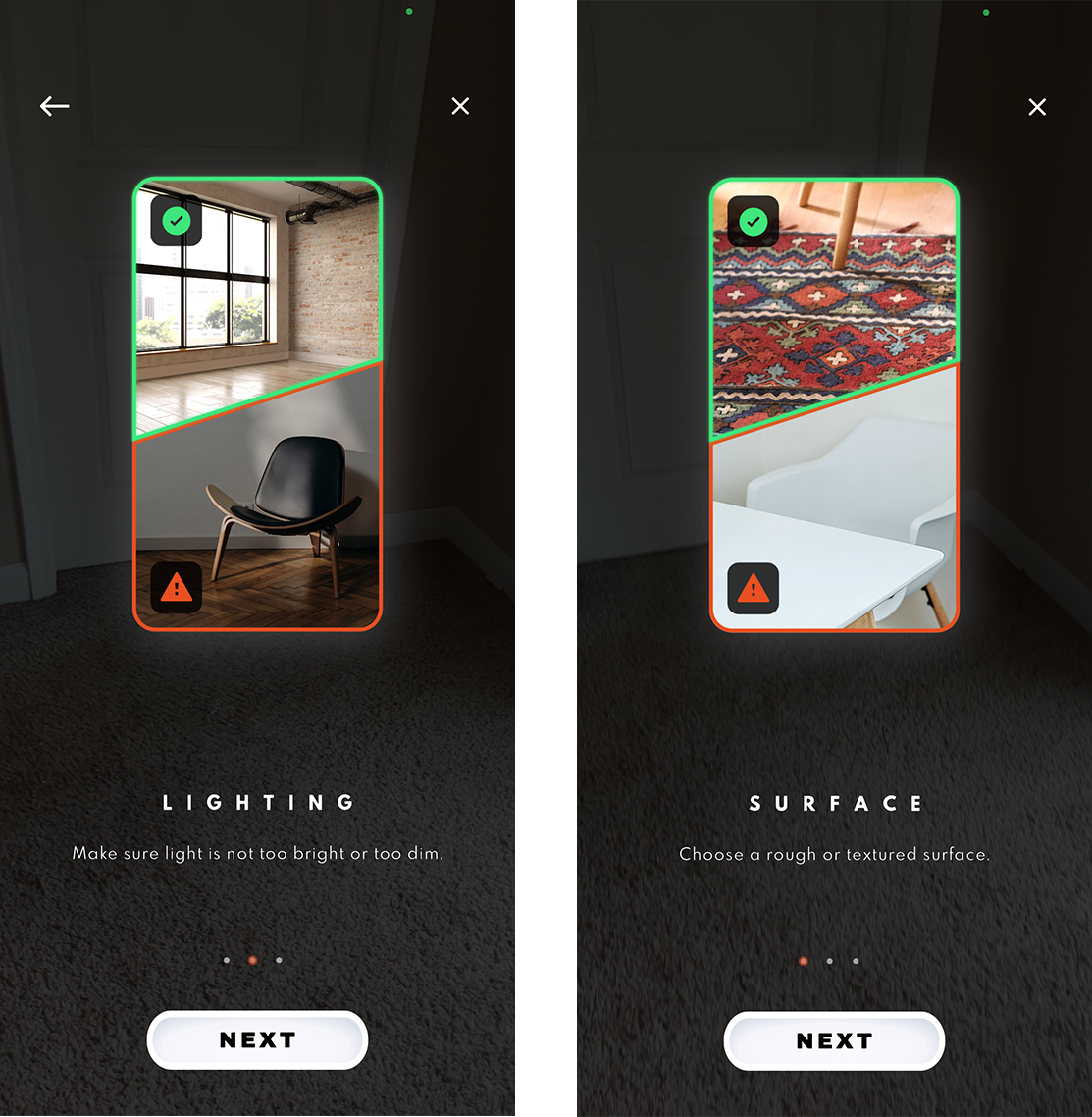 使用者需掃描粗糙或有紋理的表面,例如地板或牆壁,或某些特定的環境指示物(如牆壁與天花板的交界處)。