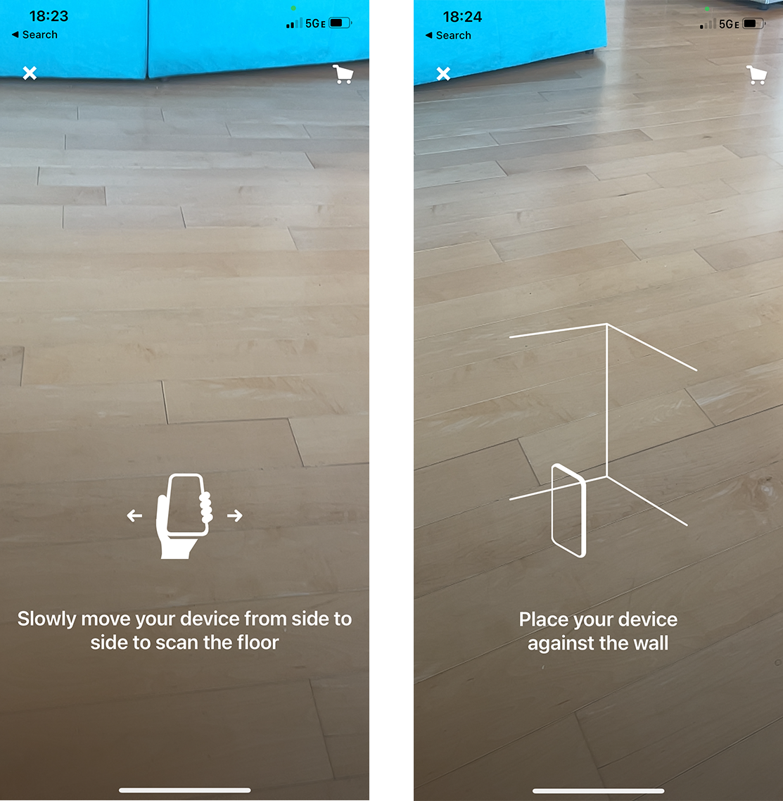 Target應用:使用者無法理解地面上的點意味著什麼,儘管“點選以放置沙發”的指令提供了一些方向,但點本身無助於下一步的判斷。
