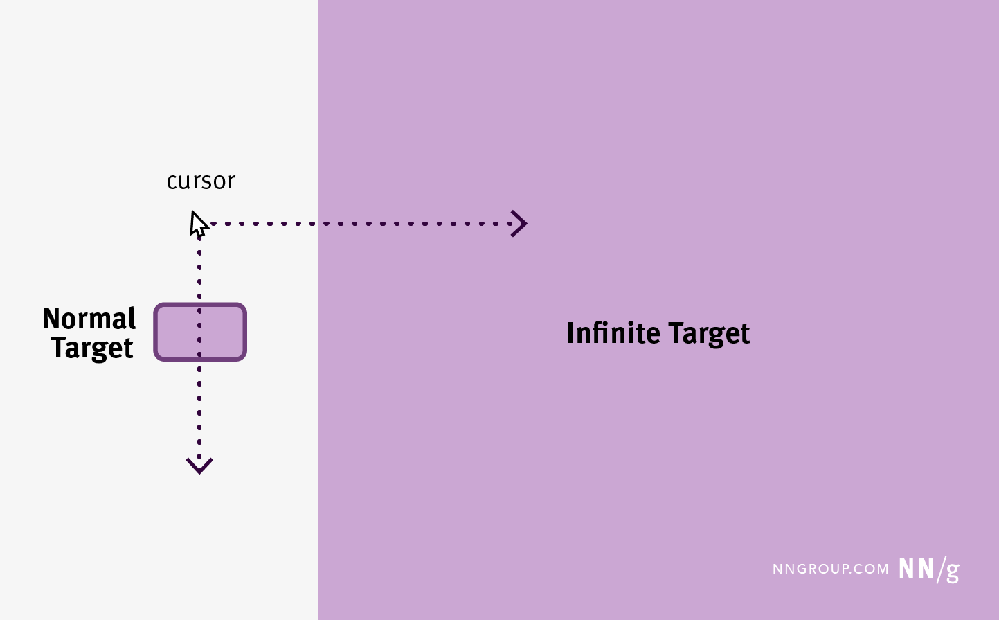 螢幕邊緣的無限目標:在滑鼠驅動介面中,螢幕邊緣目標的實際大小是無限的(如MacOS的頂部選單)。使用者無需擔心“越界”,因此可快速到達目標。