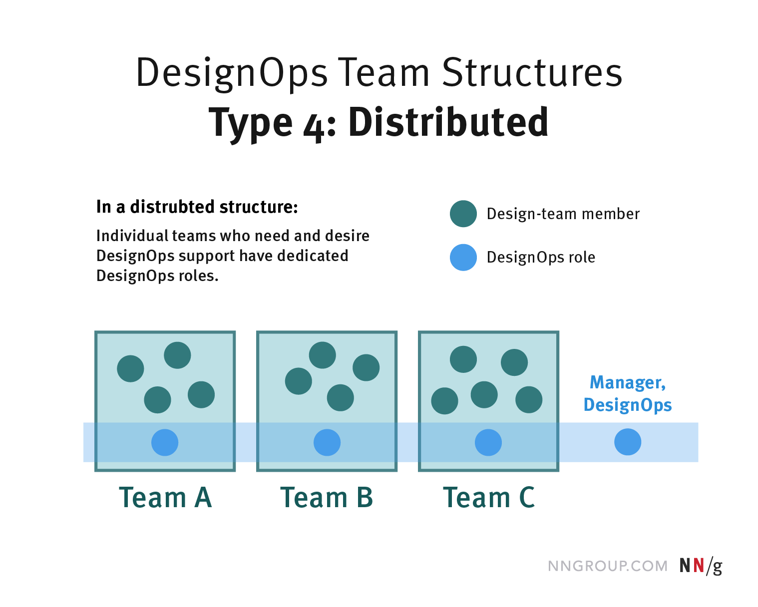 定義:DesignOps 專業人員分配到不同的設計團隊,專注於團隊的日常支援和協調。