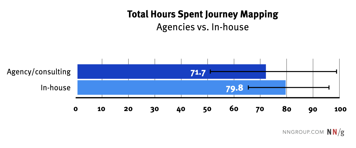 然而,代理機構在製作旅程地圖工件上花費更多時間,而內部團隊則更多地投入於研究階段。