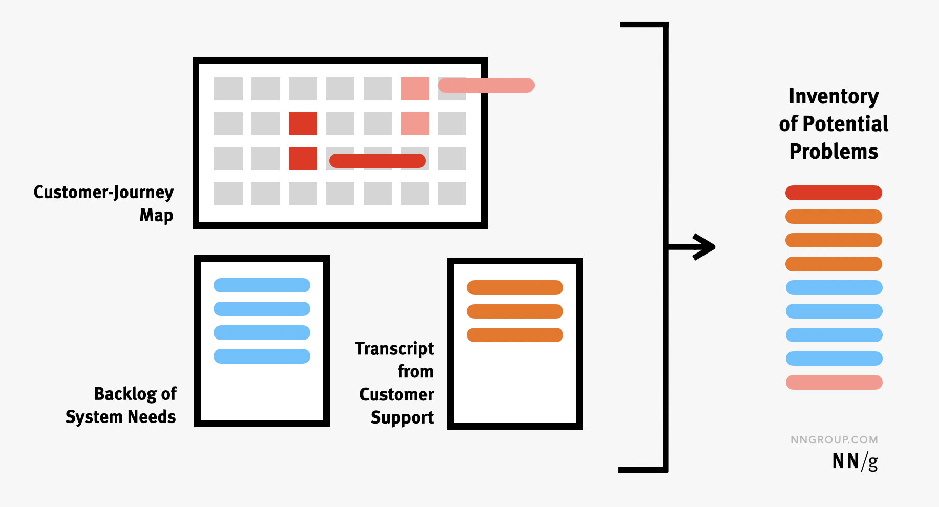 透過現有的研究和利益相關者的反饋,獲取潛在需要解決的問題。以下是可能的輸入來源: