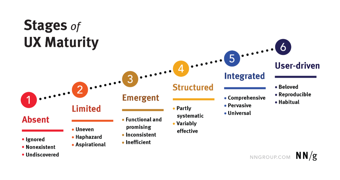- Nonexistent(不存在):沒有相關的 UX 團隊或流程。