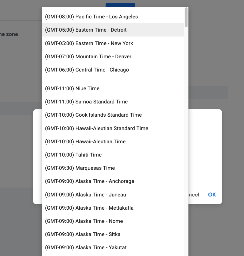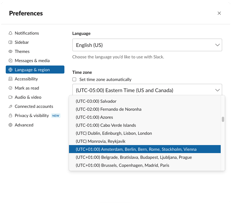 使用者更喜歡按字母順序排列的時區列表:無論是偏移量排列還是按地區分組,使用者普遍認為按字母順序排列更符合預期。分組排列時,應確保主要地區(如常用的大陸或國家)位於列表頂部。