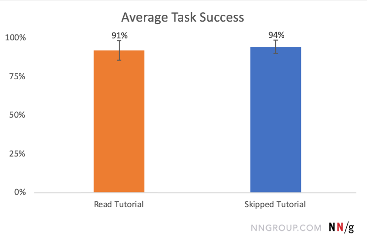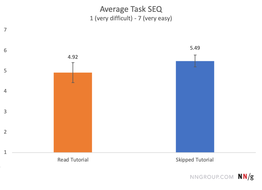 - 認知負擔:閱讀教程的使用者感知任務更復雜。