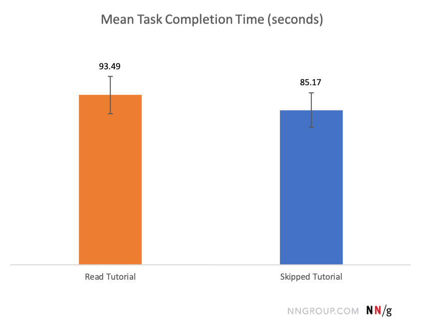 組B(跳過教程):平均完成時間為85.17秒(無顯著差異)。