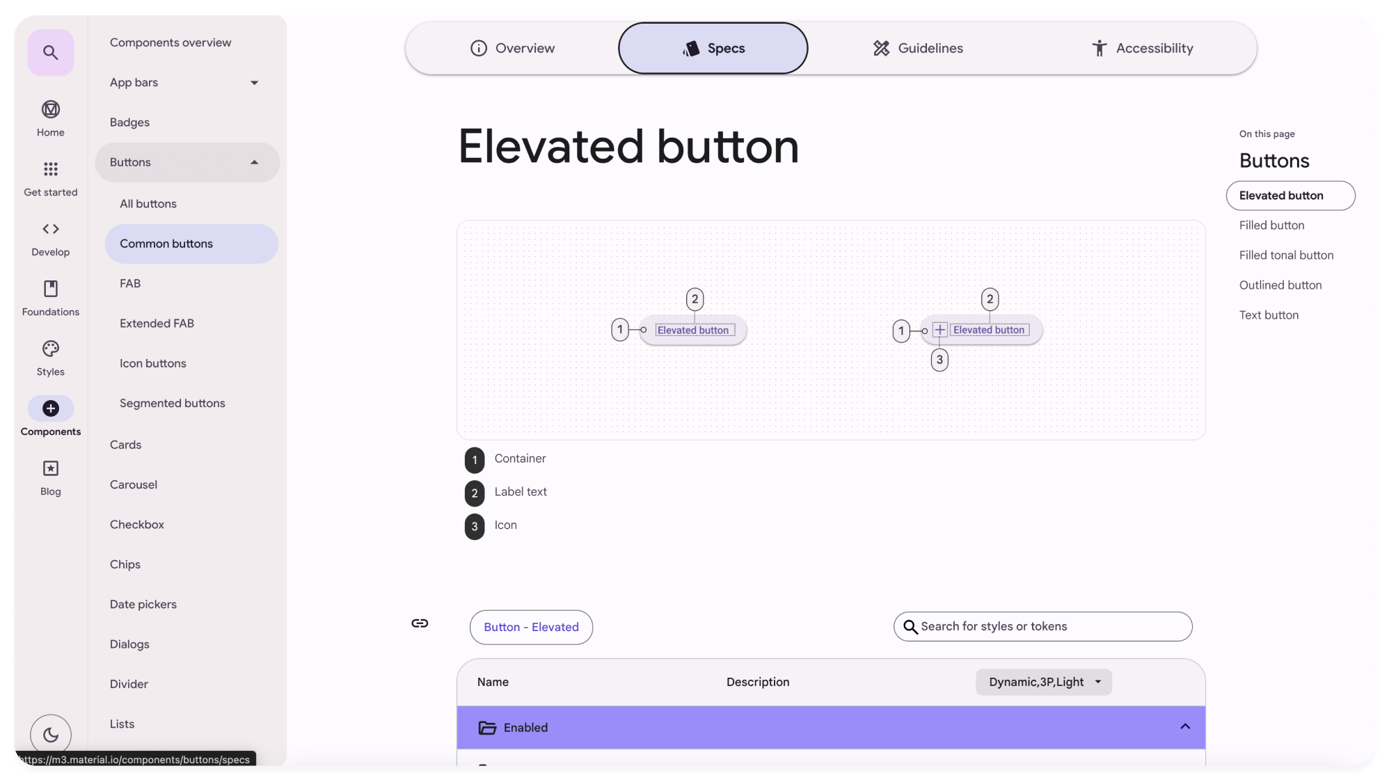 顯示按鈕元件的狀態、屬性值(如高度 40dp);