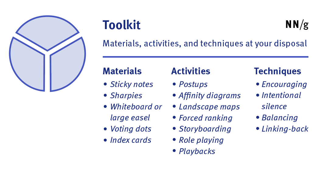 與使用者研究中的引導不同,工作坊引導聚焦於促進團隊的協作,而非與參與者直接互動。