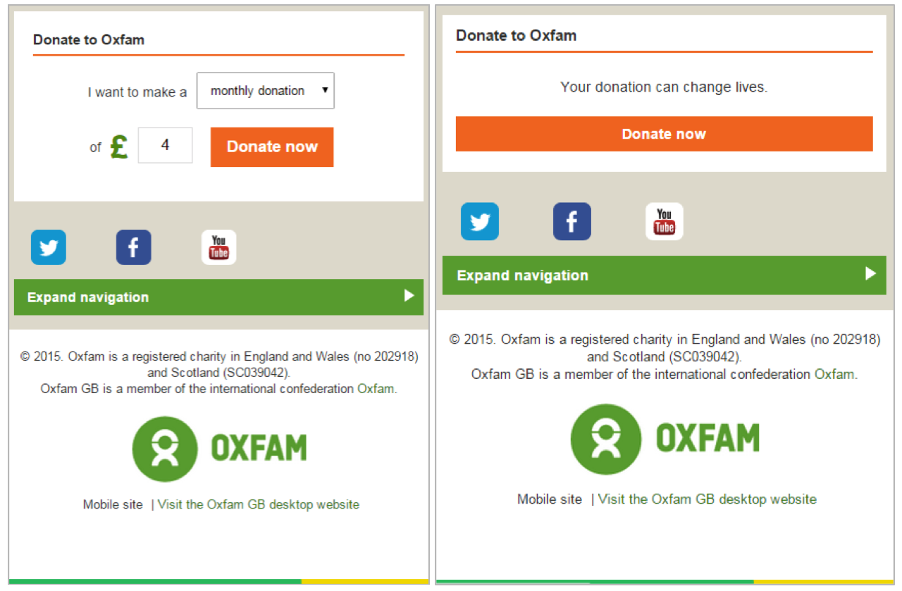 捐贈建議值:Oxfam 在A/B測試中發現,提供建議的捐贈金額比僅顯示“立即捐贈”按鈕的版本提升了23%的表單完成率。