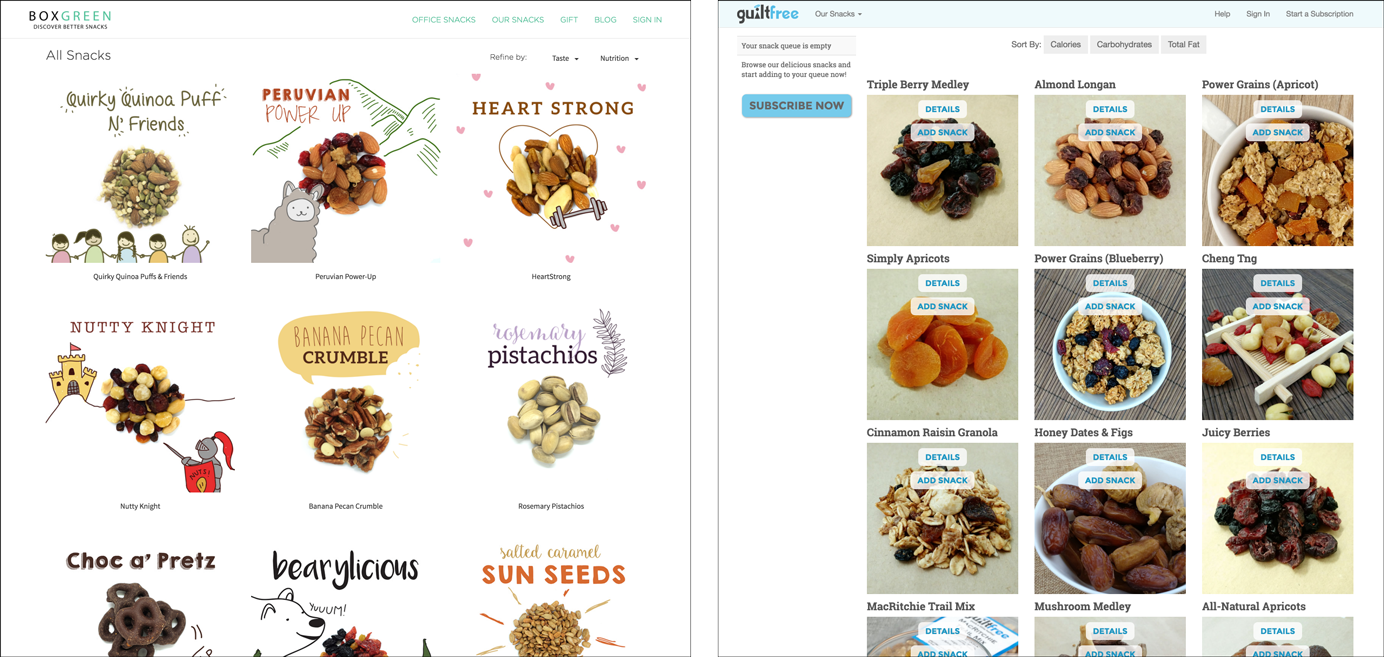 - 高質量圖片和適度留白有助於凸顯內容。例如,參與者更喜歡 BoxGreen.co 的網站設計,而非 GuiltFree.sg,因為前者的圖片和留白設計更具吸引力。